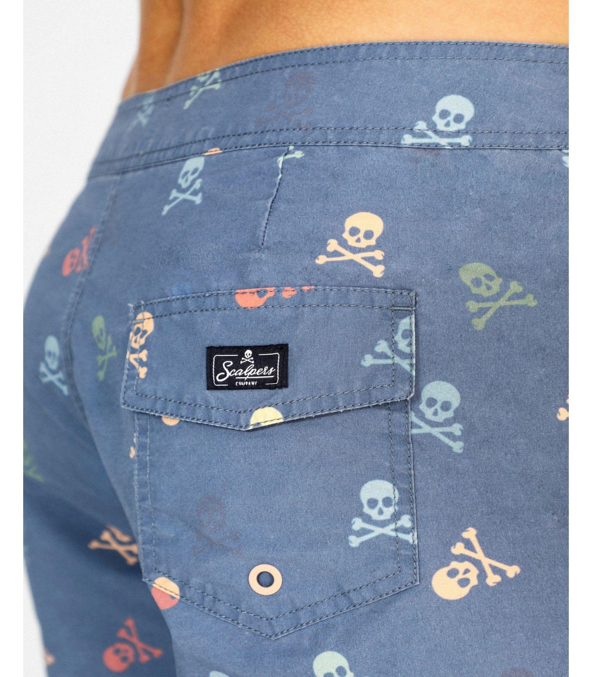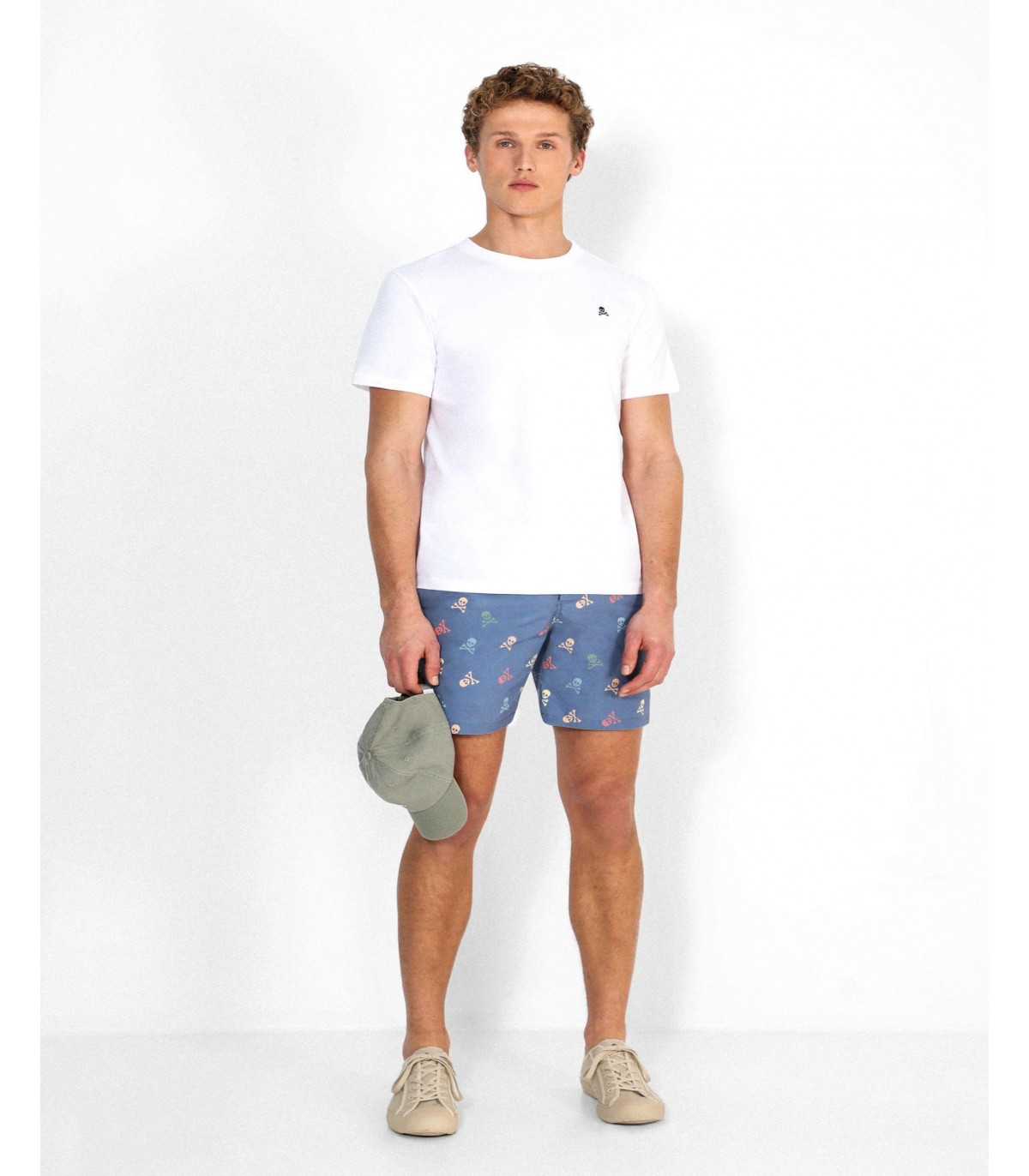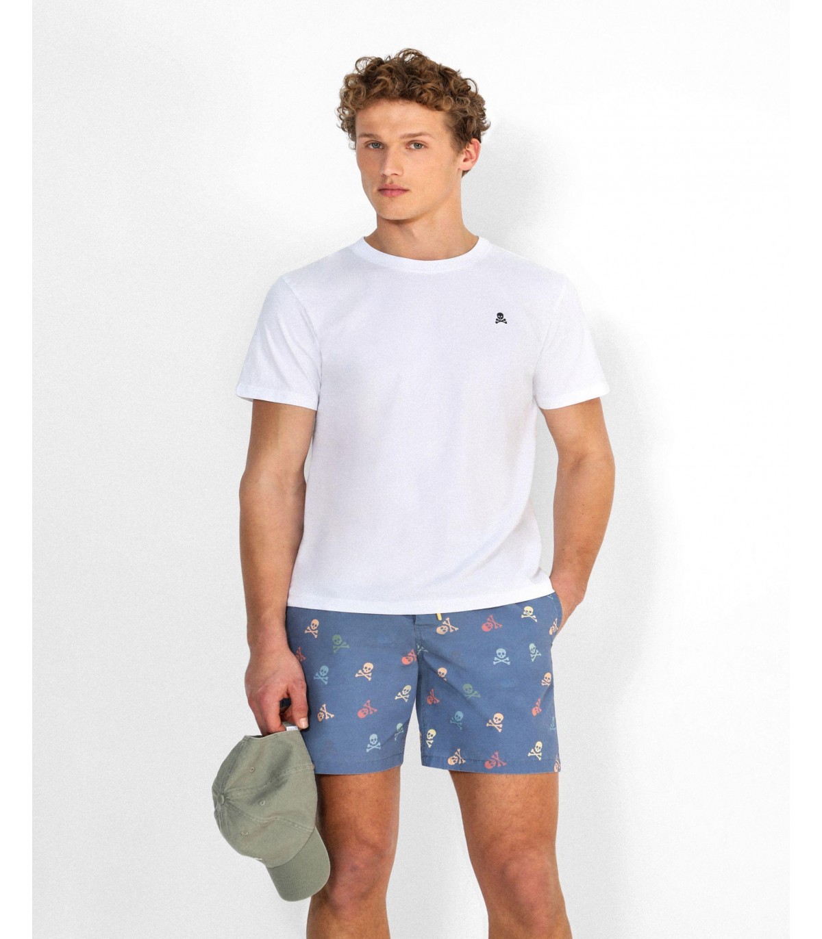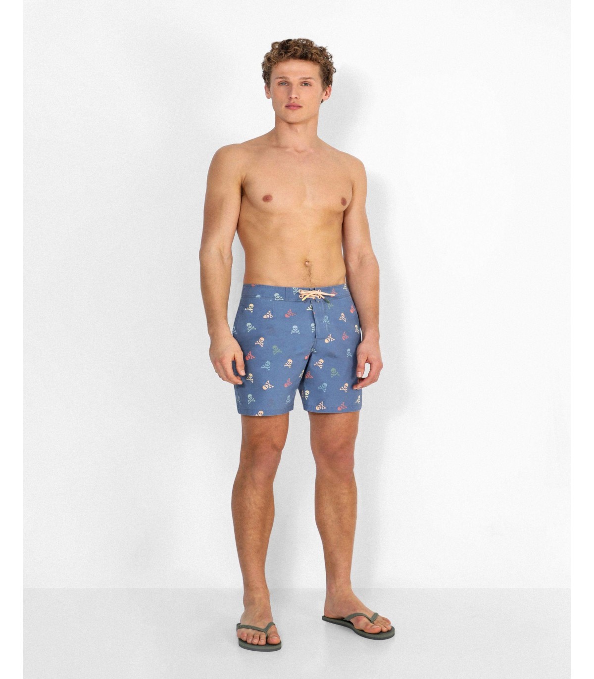 - Bañador confeccionado en tejido mezcla de algodón. Corte Regular Fit. Estampado de calaveras multicolor.