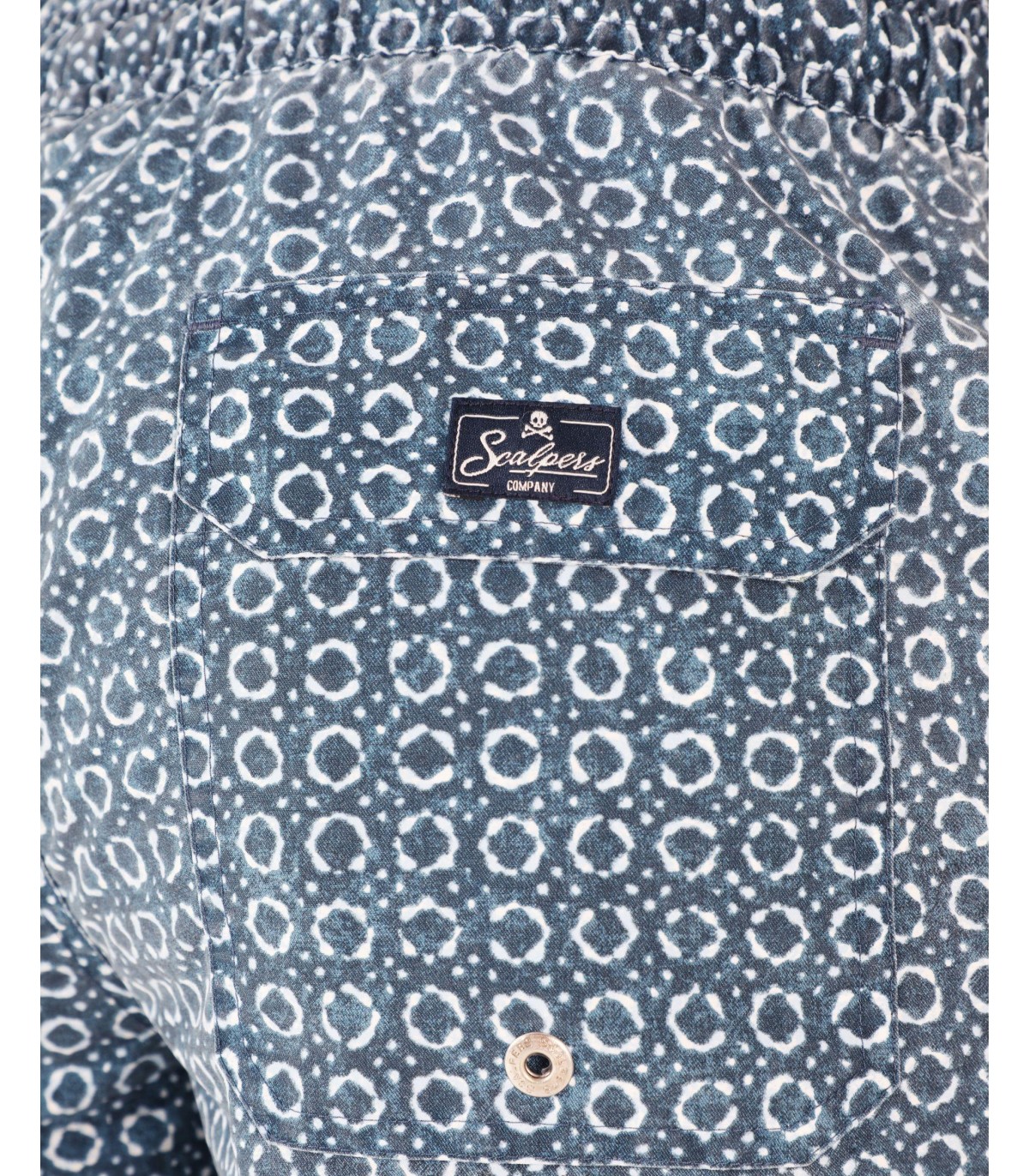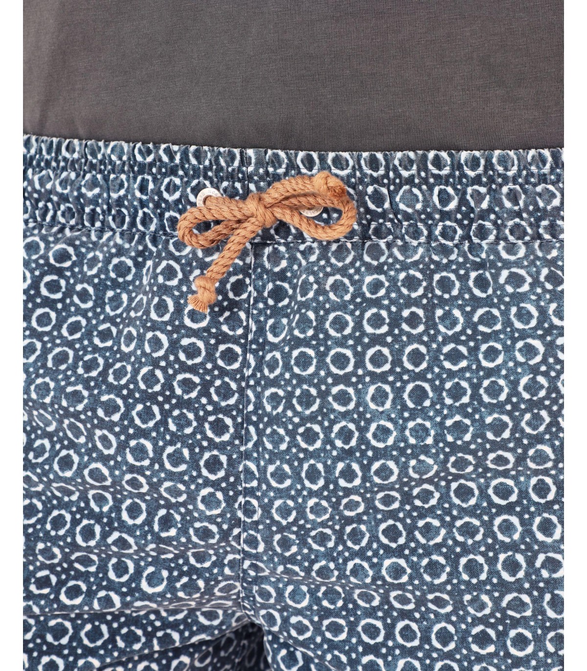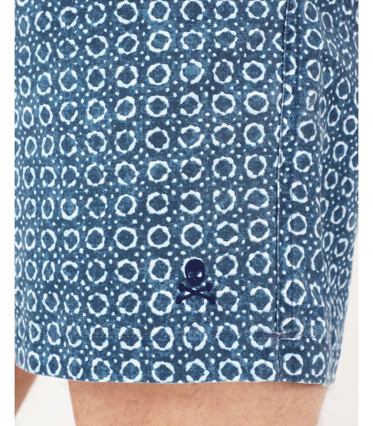 - Bañador con estampado de círculos confeccionado en tejido técnico. Corte Regular Fit, cierre con lazada y elástico en cintura. Detalle de calavera en el bajo.