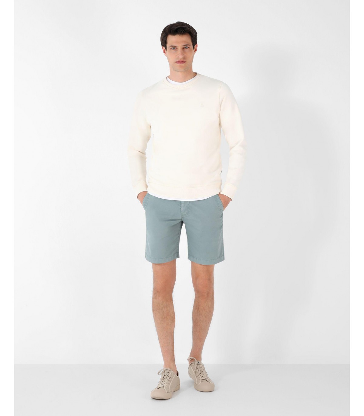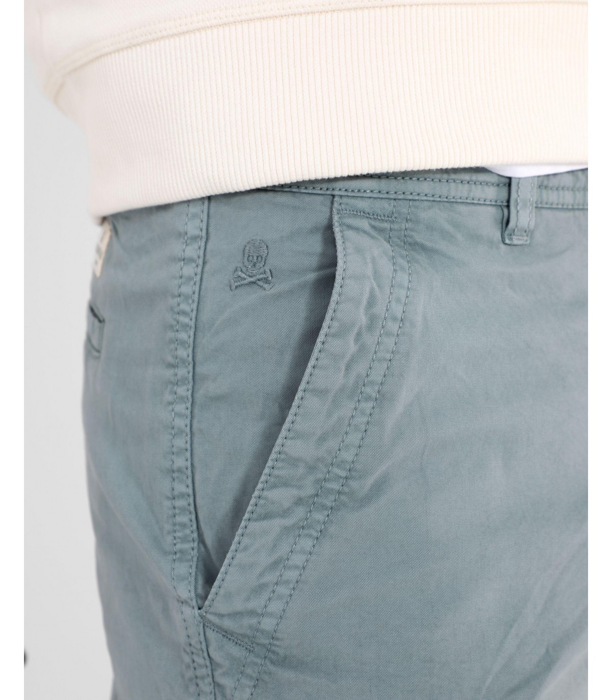 Bermudas confeccionadas en tejido 100% algodón. Corte Regular Fit y cierre con botón y cremallera. Tiene bolsillos laterales y bolsillos traseros. Tiene trabillas.