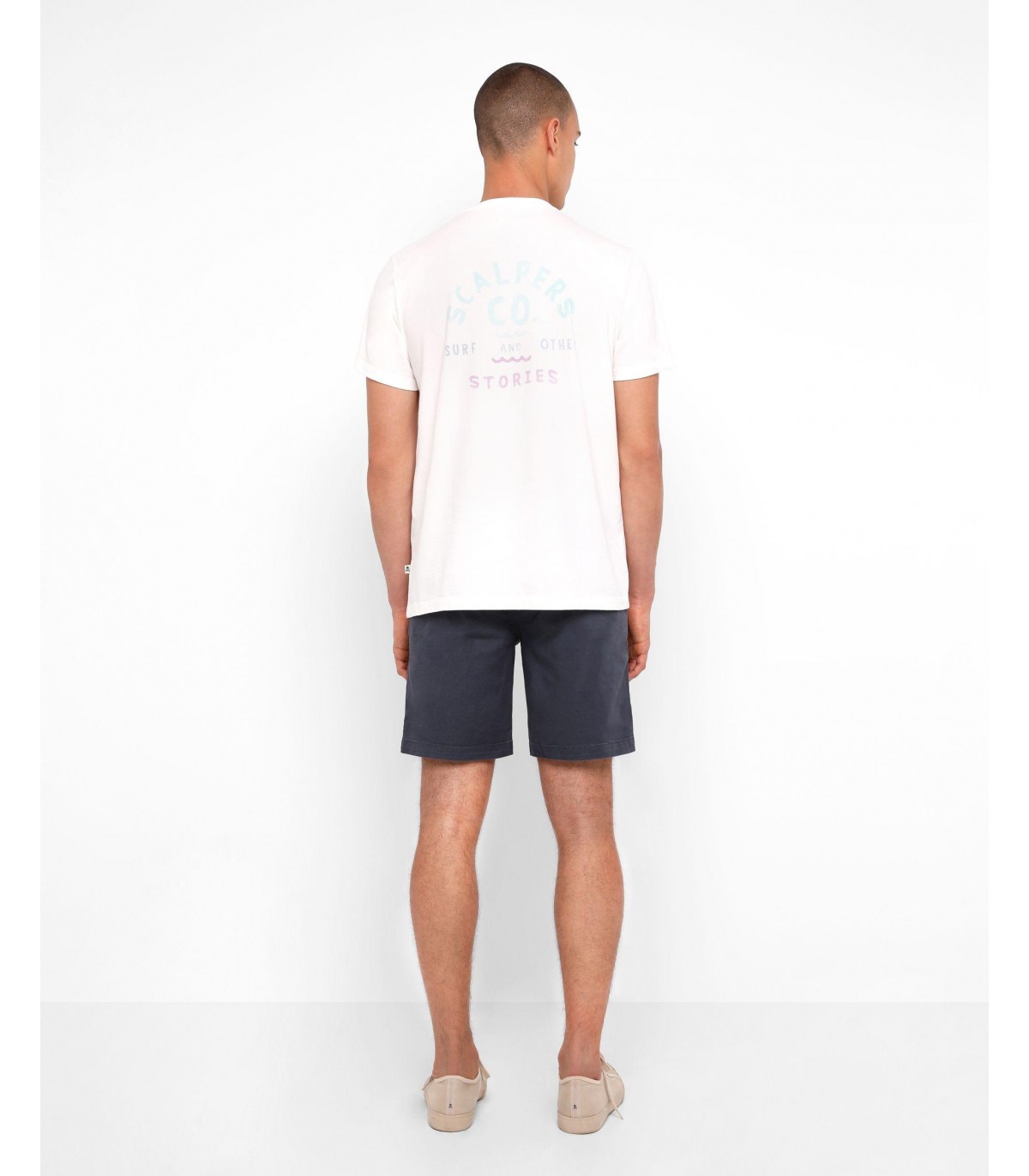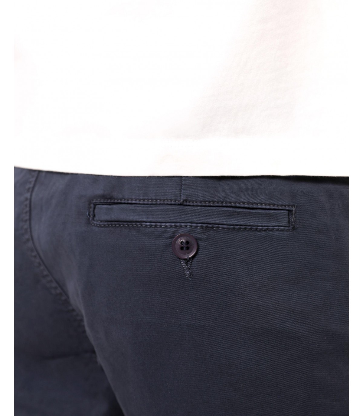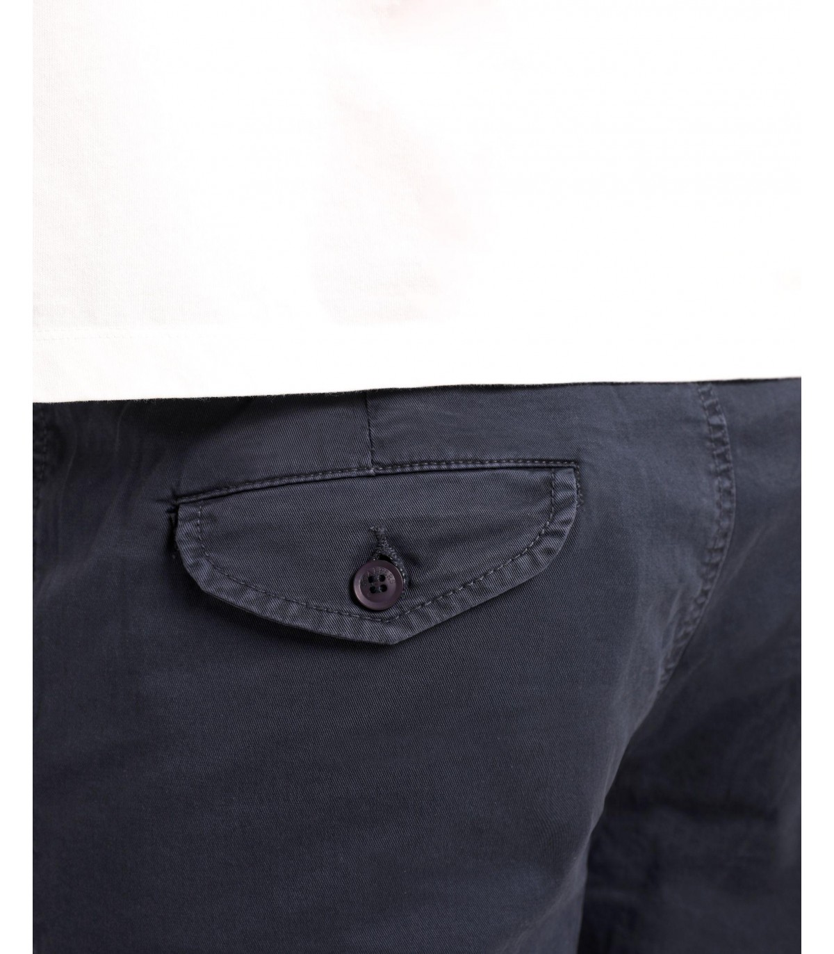 - Bermudas confeccionadas en tejido de algodón orgánico ligeramente elásticas. Corte Regular Fit con cinturilla elástica, cierre con botón y cremallera y bolsillos laterales y trasero con botón. Detalle de calavera bordada en el bajo.