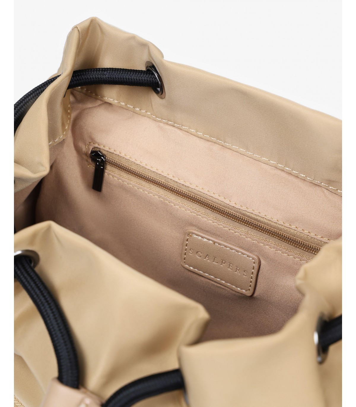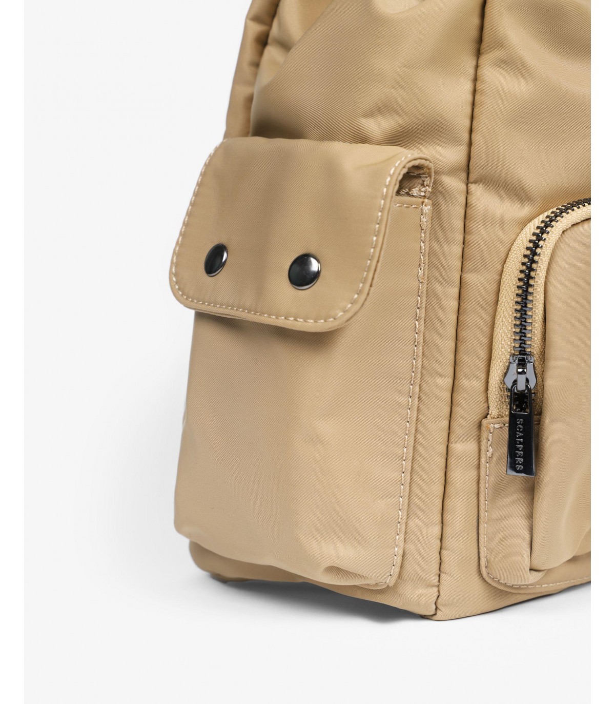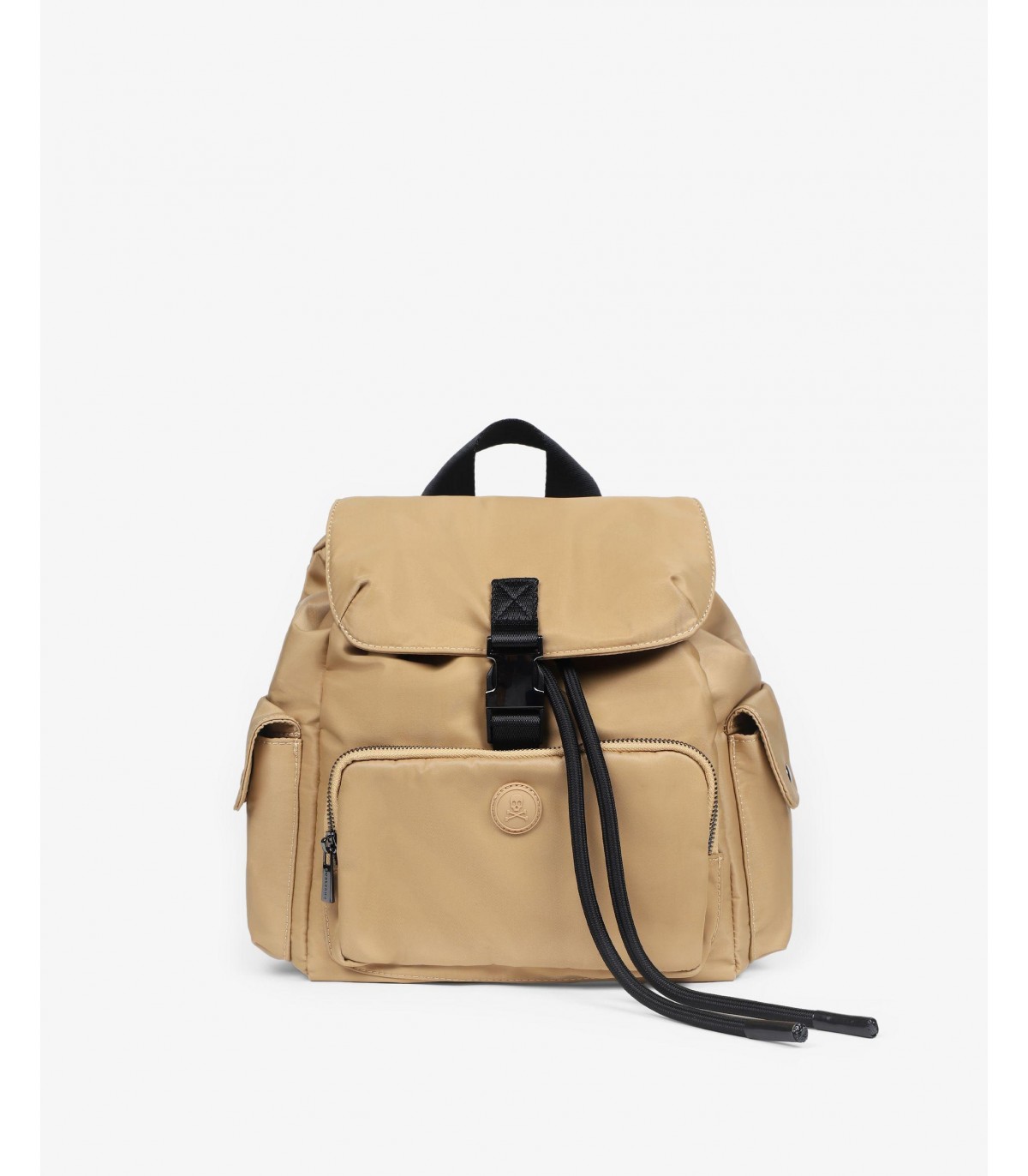 - Mochila confeccionada en tejido técnico. Cierre tipo mochila con cordón ajustable. Bolsillos laterales y frontal con cremallera. Detalle de calavera engomada.