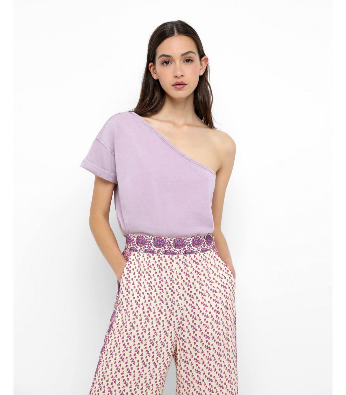 - Camiseta confeccionada en tejido 100% algodón. Corte Regular Fit, escote asimétrico con una sola manga.