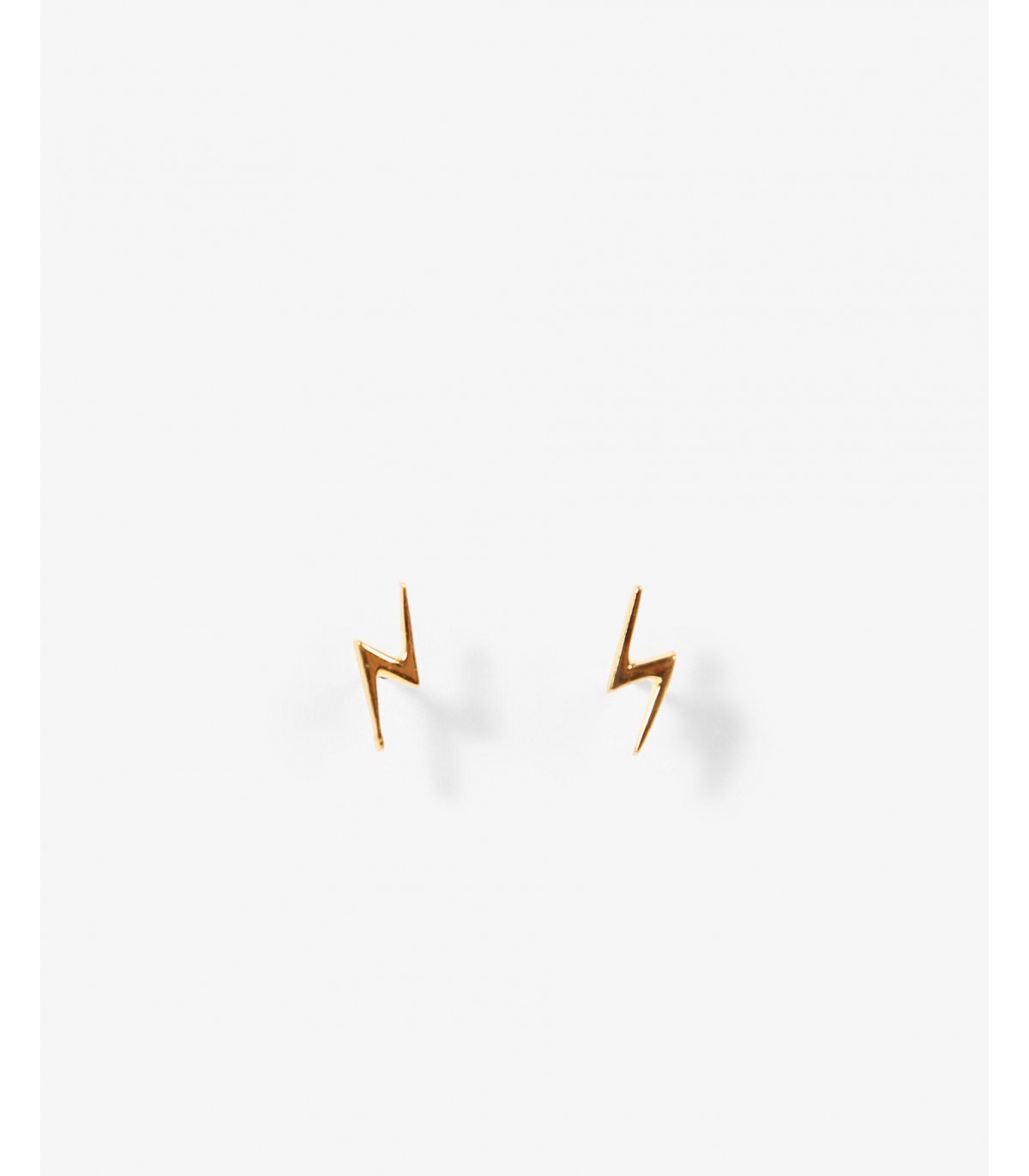 Pendientes mini con forma de rayo de bronce bañado en oro de 18k. Cierre de tuerca.