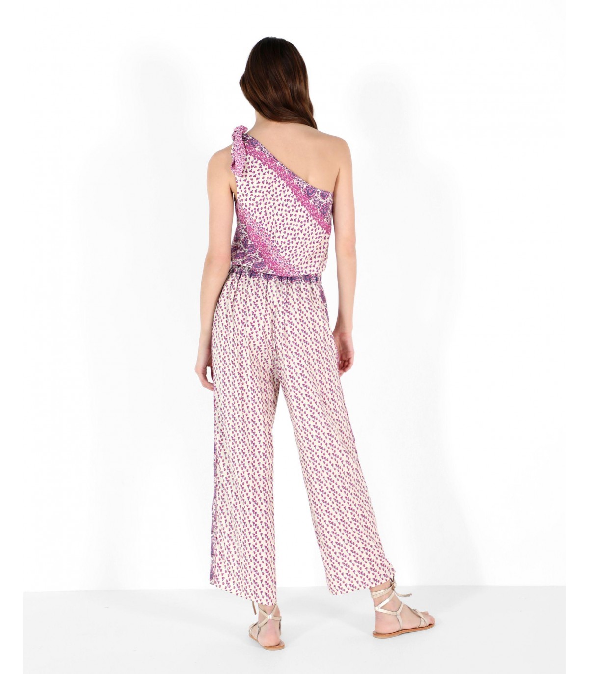 Pantalón con estampado. Corte culotte fluído, cierre con cremallera y bolsillos laterales.