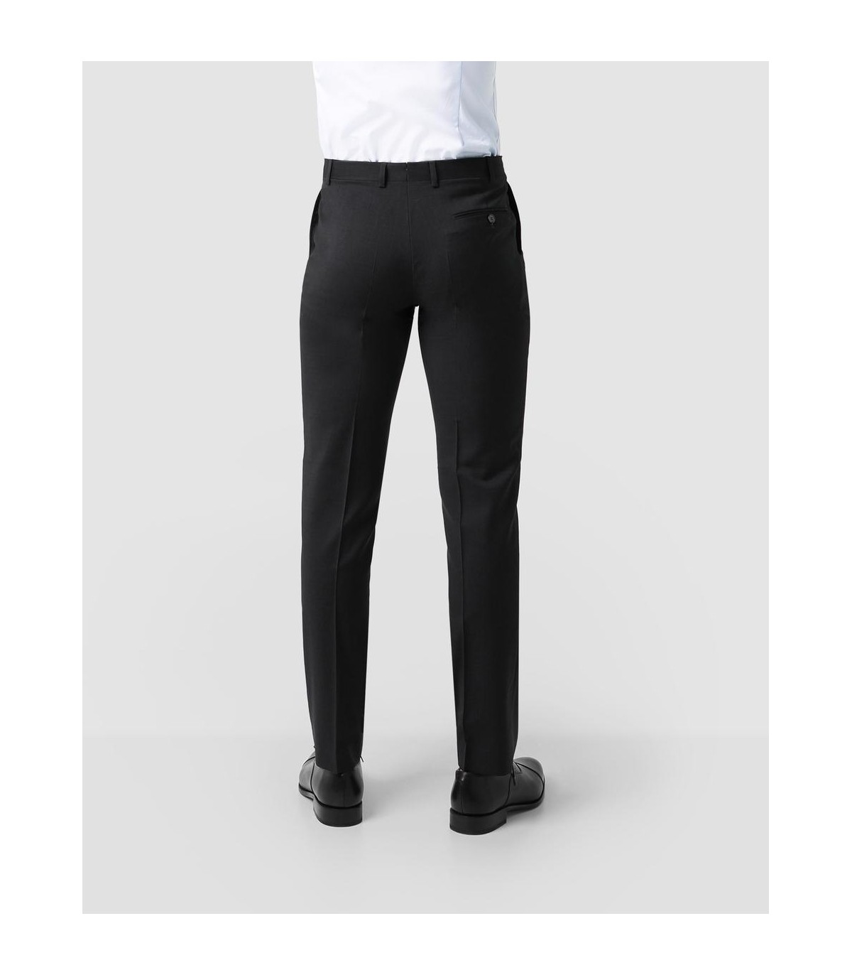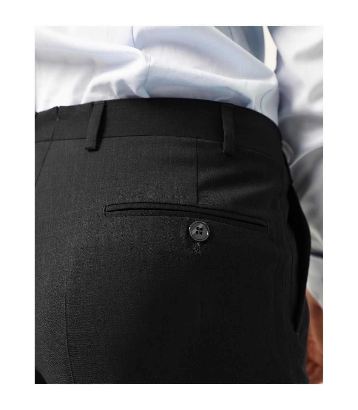 - Pantalón confeccionado en tejido de lana virgen. Corte recto, cierre con botón y cremallera. Bolsillos laterales y traseros cerrados con botón.