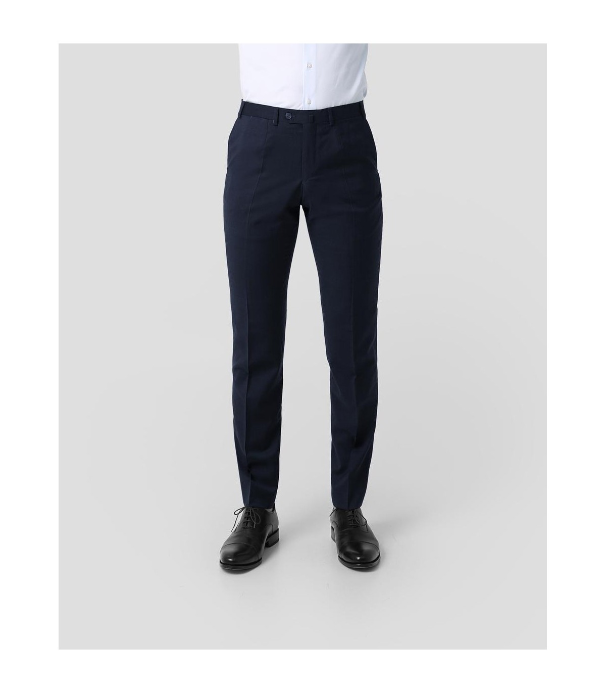 - Pantalón confeccionado en tejido de lana virgen. Corte recto, cierre con botón y cremallera. Bolsillos laterales y traseros cerrados con botón.