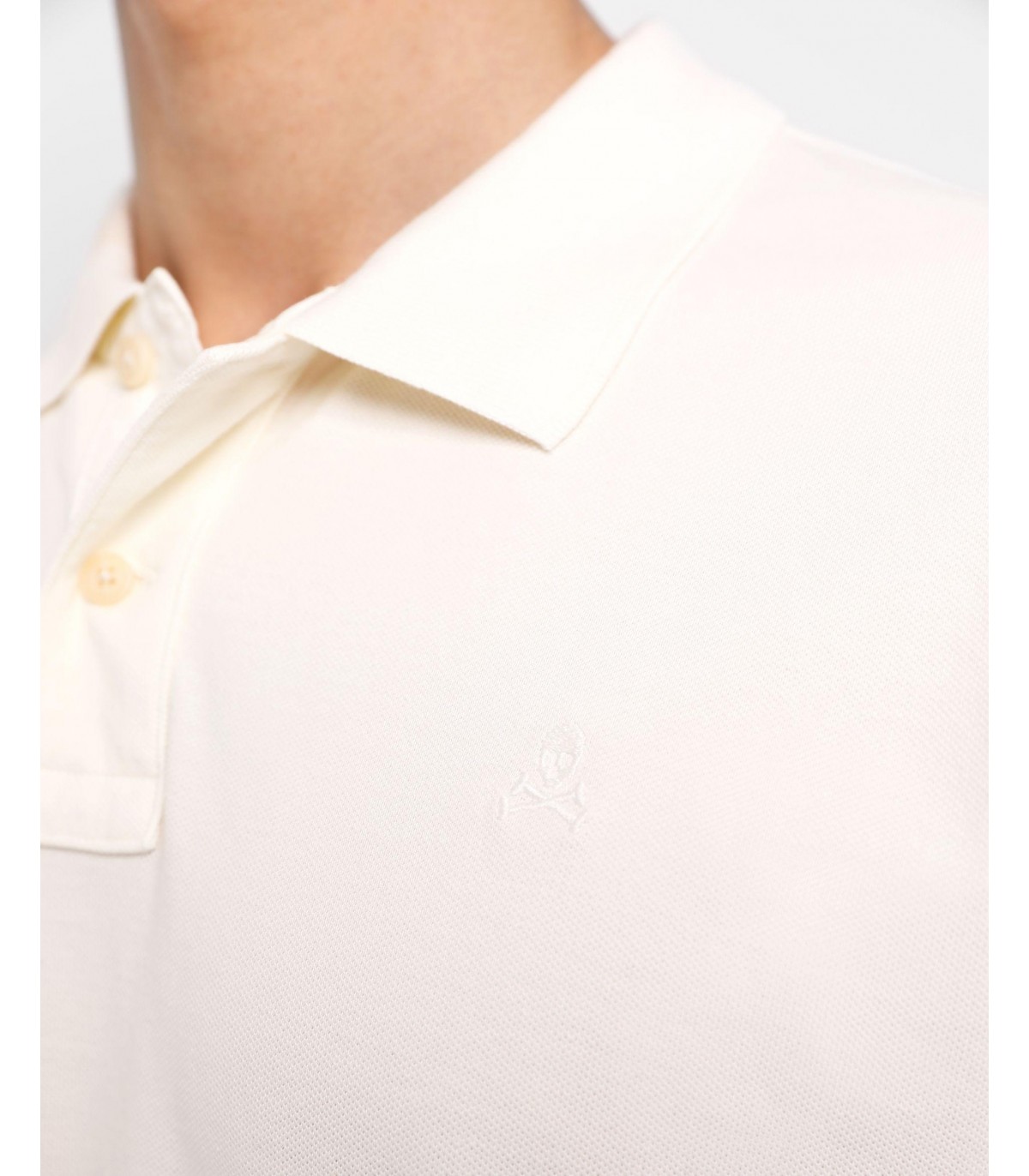Polo confeccionado en tejido 100% algodón. Corte Regular Fit, cuello clásico y cierre con botones. Manga corta y detalle de calavera a tono.