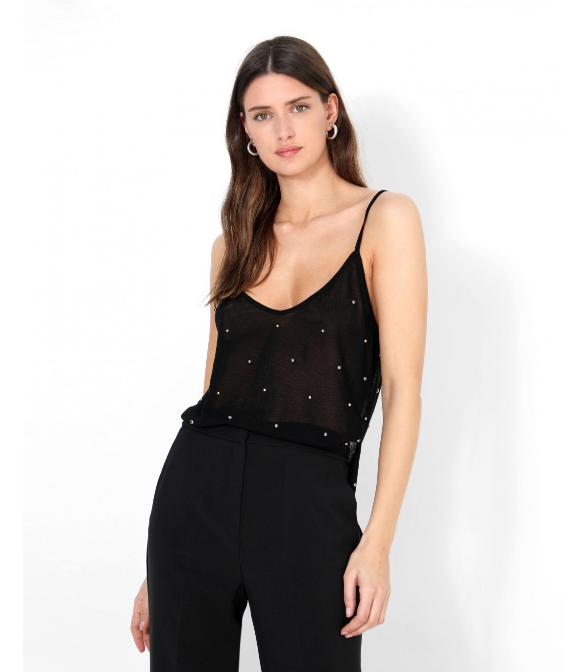 - Top con tachuelas all over. Corte Regular Fit, cuello de pico y tirantes.