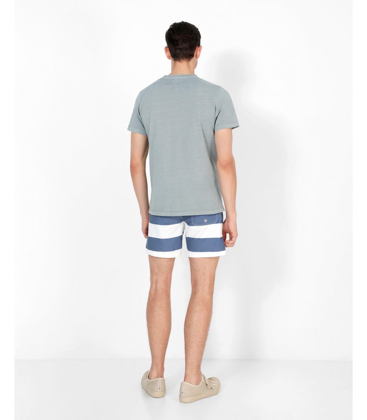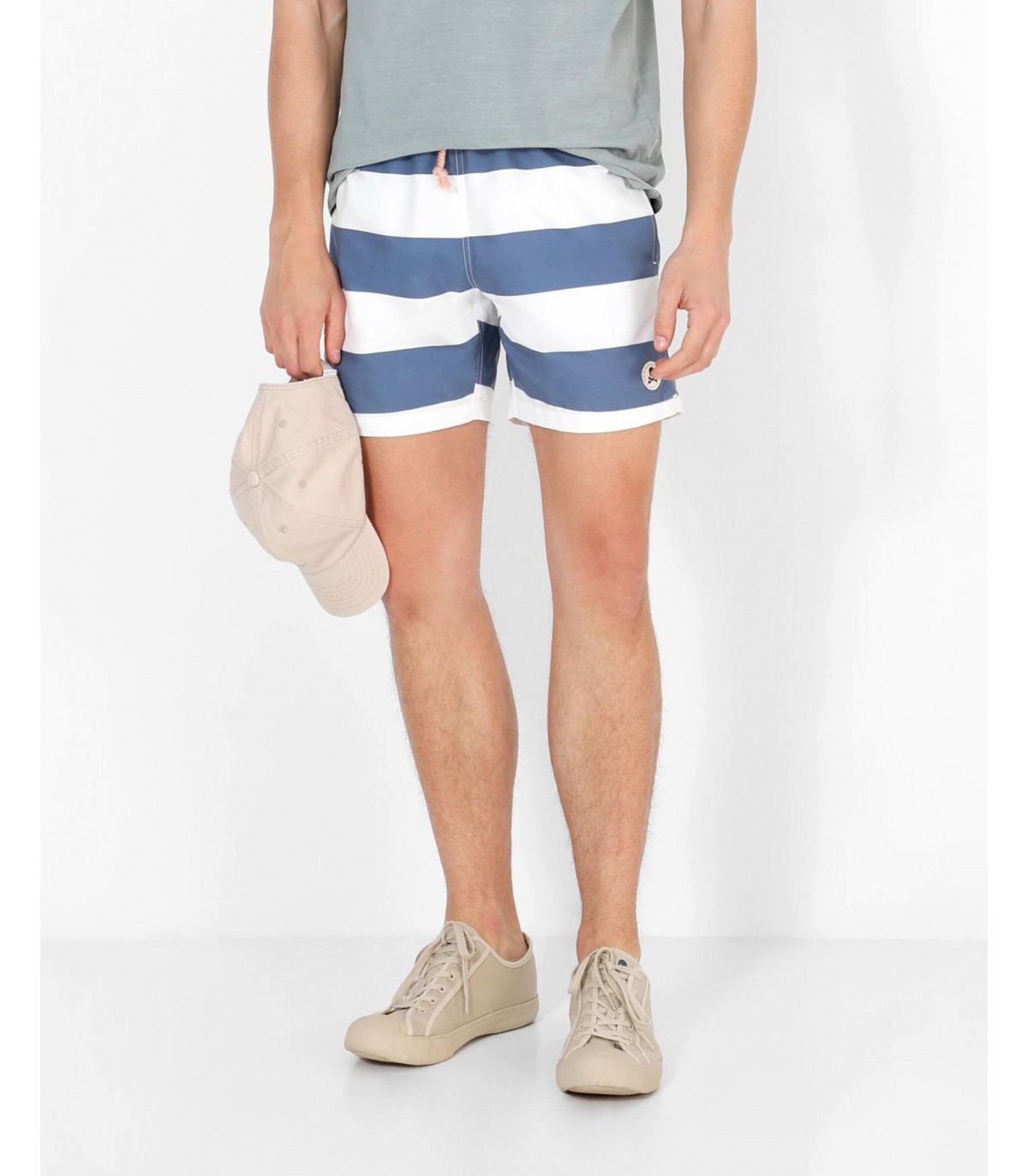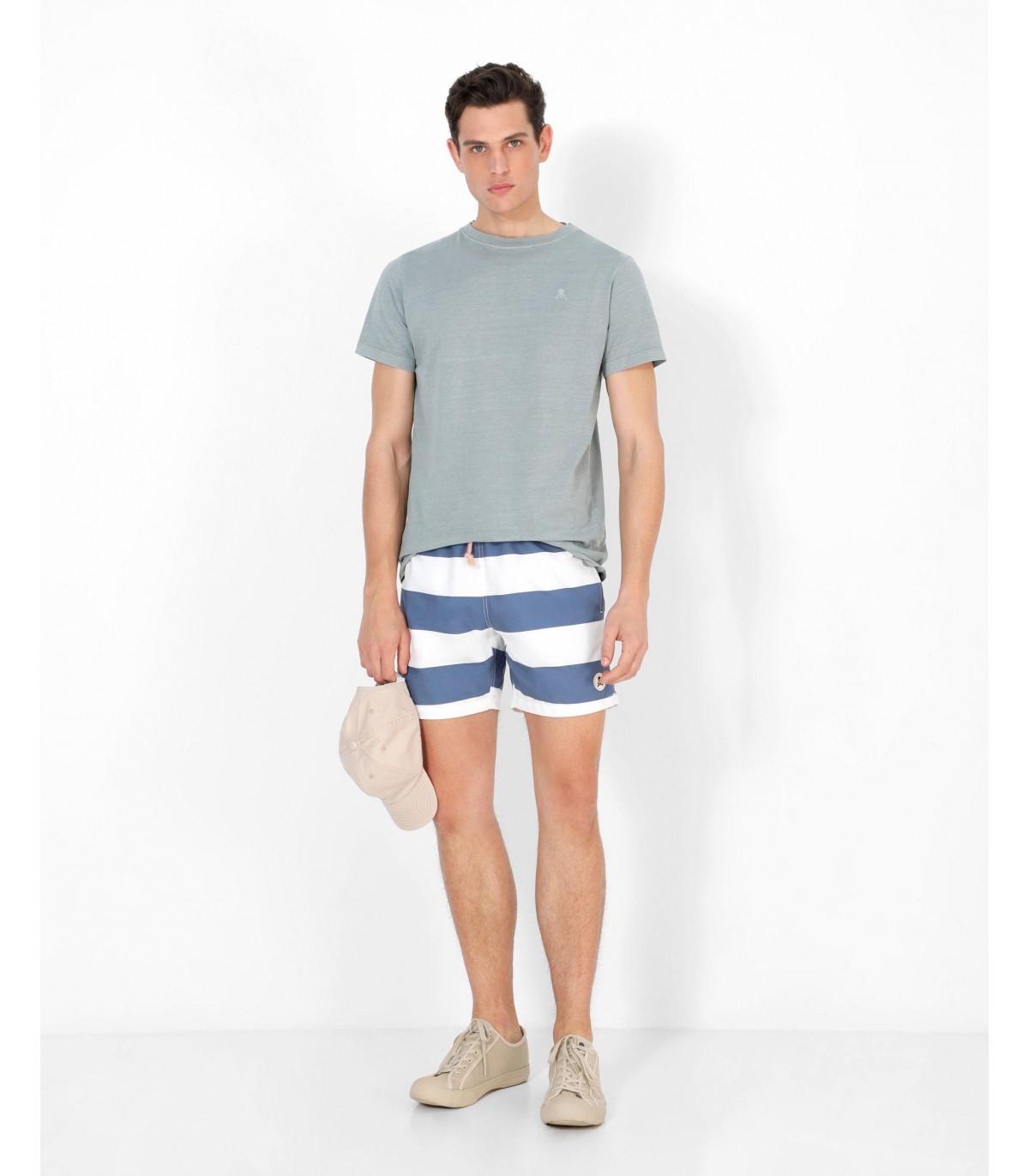 - Bañador con estampado de rayas. Corte Regular Fit, cierre con cordón y cintura elástica. Bolsillos laterales y trasero y detalle de parche de calavera.