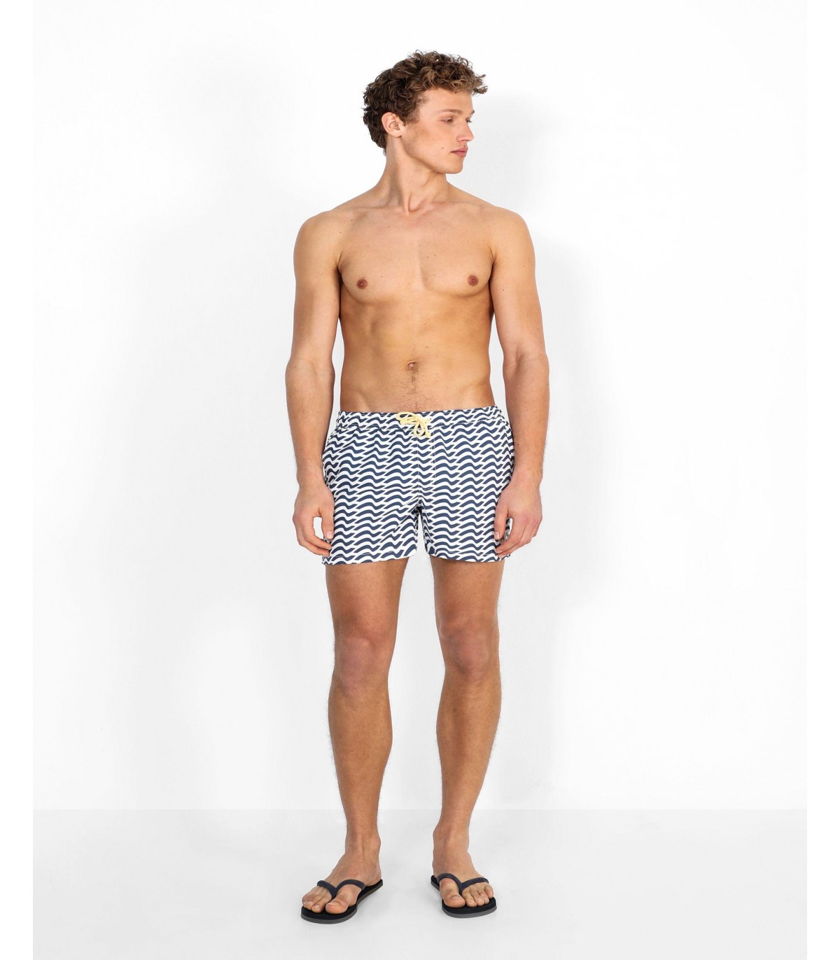 - Bañador con estampado de ondas confeccionado en tejido de poliéster. Corte Regular Fit, cierre con cordón y velcro. Detalle de calavera engomada en el bajo y bolsillos laterales y trasero.