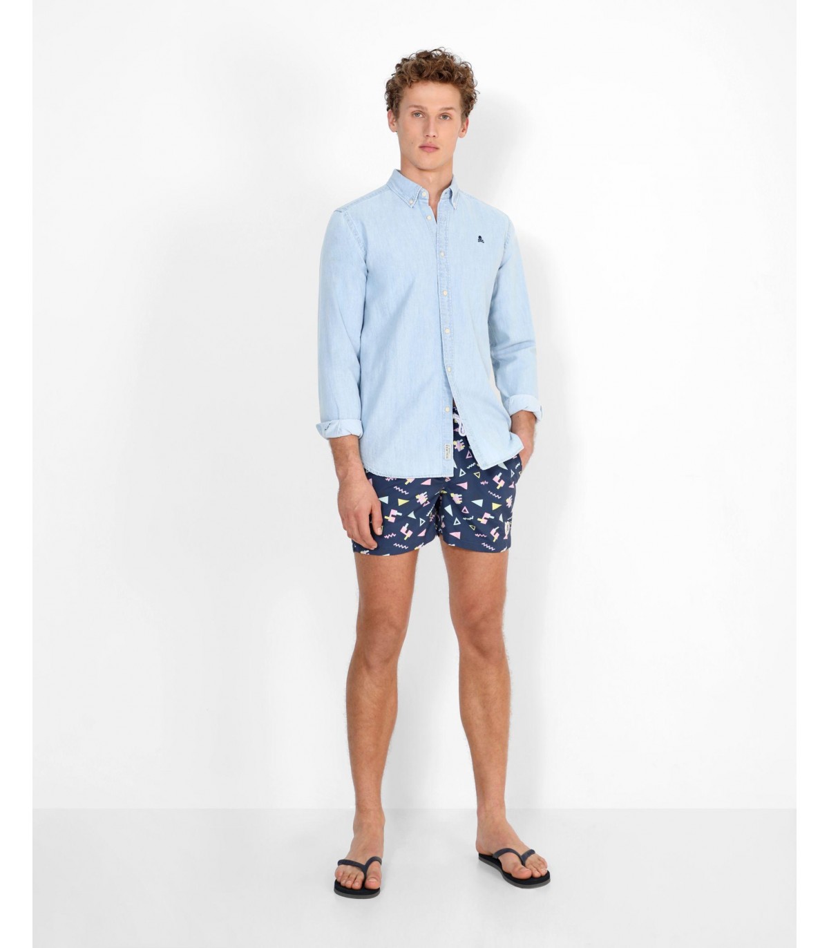 - Bañador con prints geométricos confeccionado en tejido de poliéster. Corte Regular Fit, cierre con cordón y velcro y detalle de calavera engomada. Bolsillos laterales y traseros.