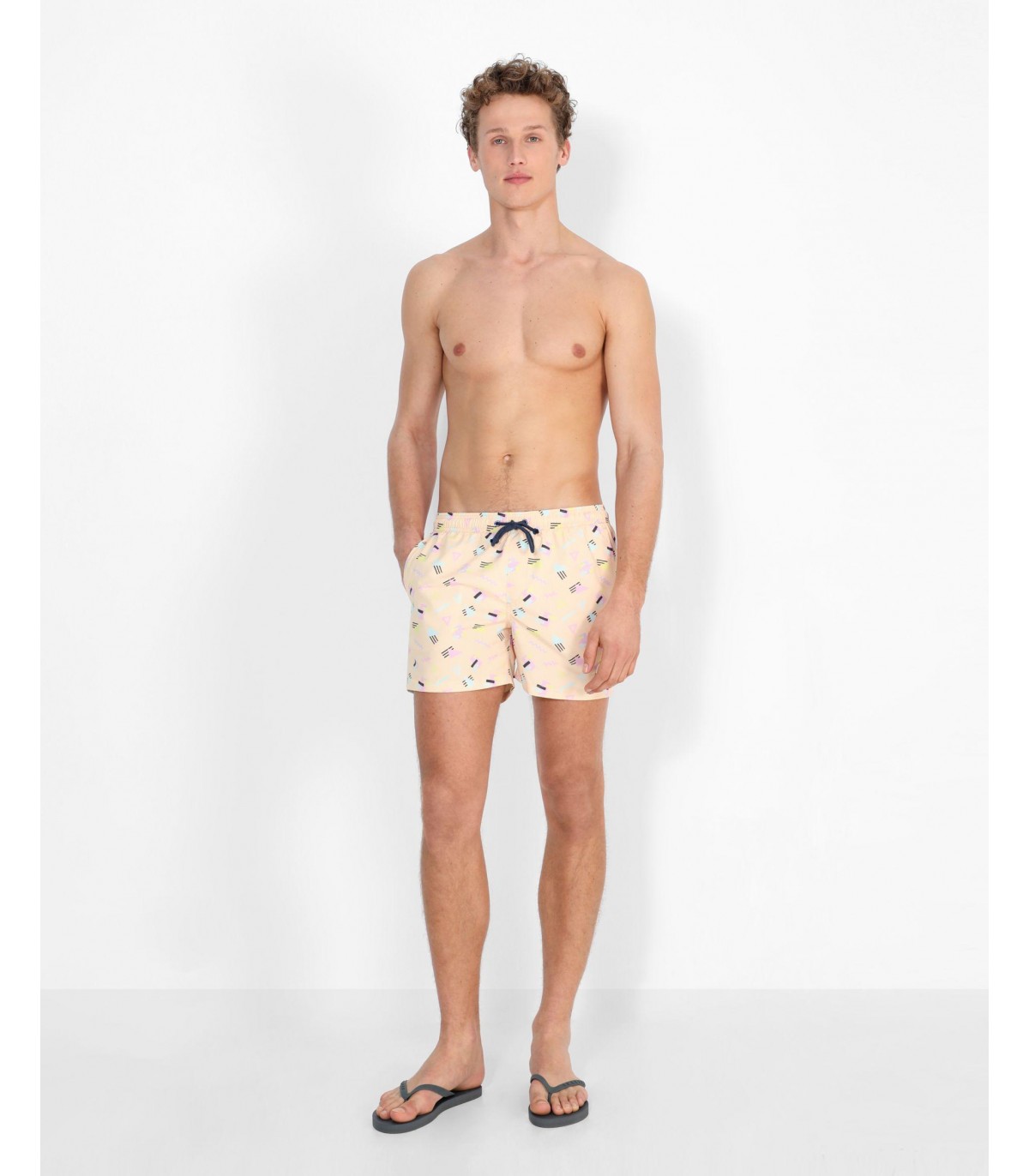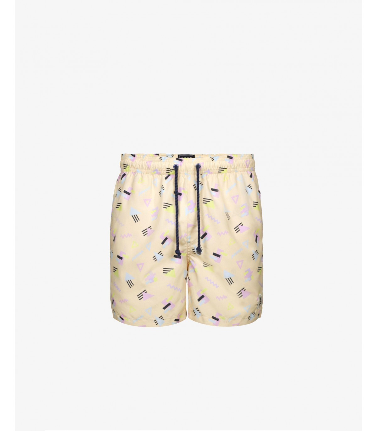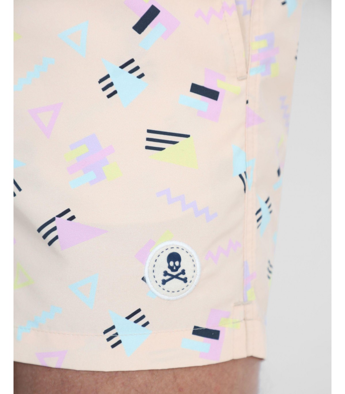 Bañador con prints geométricos confeccionado en tejido de poliéster. Corte Regular Fit, cierre con cordón y velcro y detalle de calavera engomada. Bolsillos laterales y traseros.