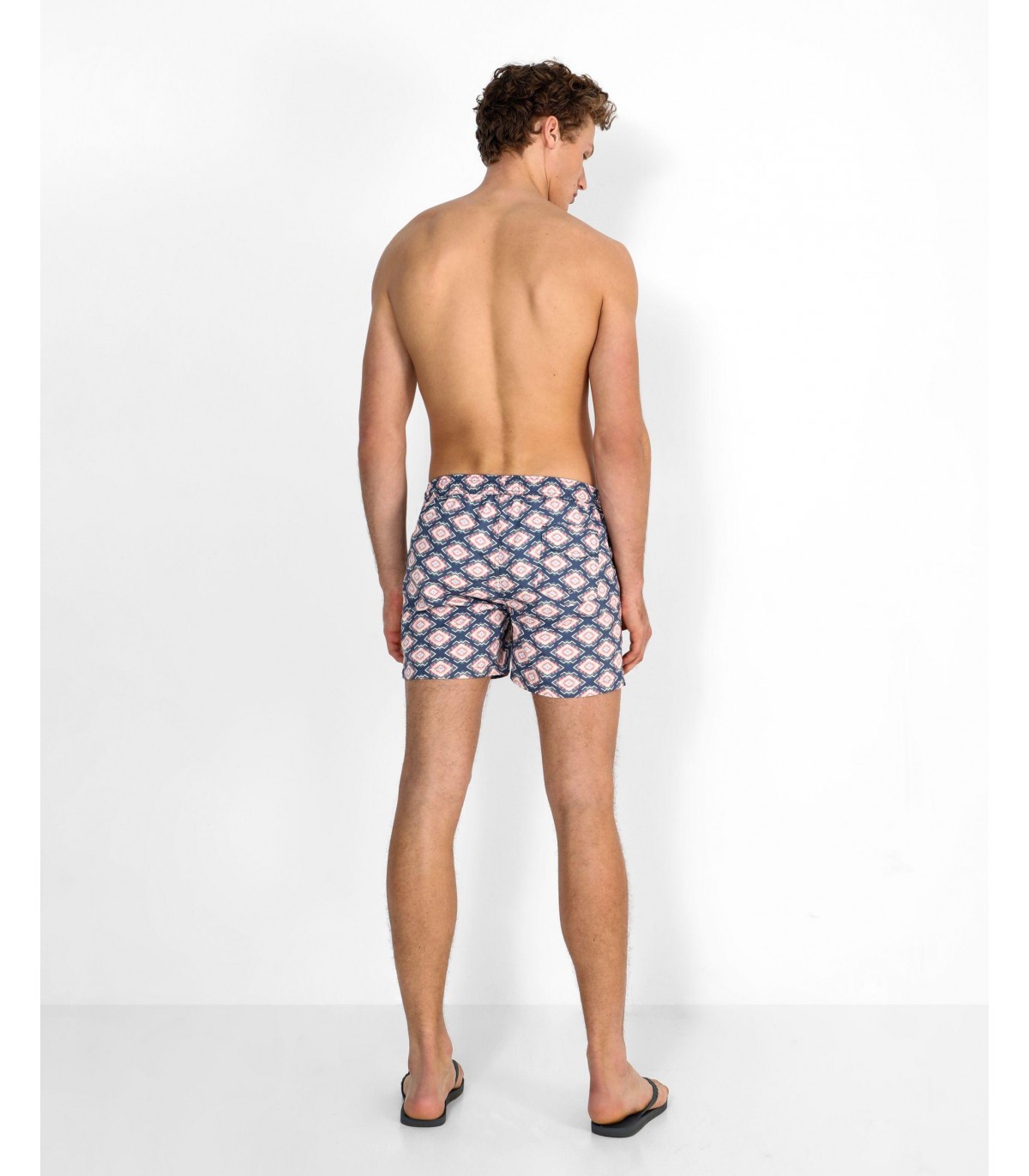- Bañador con estampado de ikat confeccionado en tejido de poliéster. Corte Regular Fit, cierre con cordón y velcro y detalle de calavera engomada en el bajo.