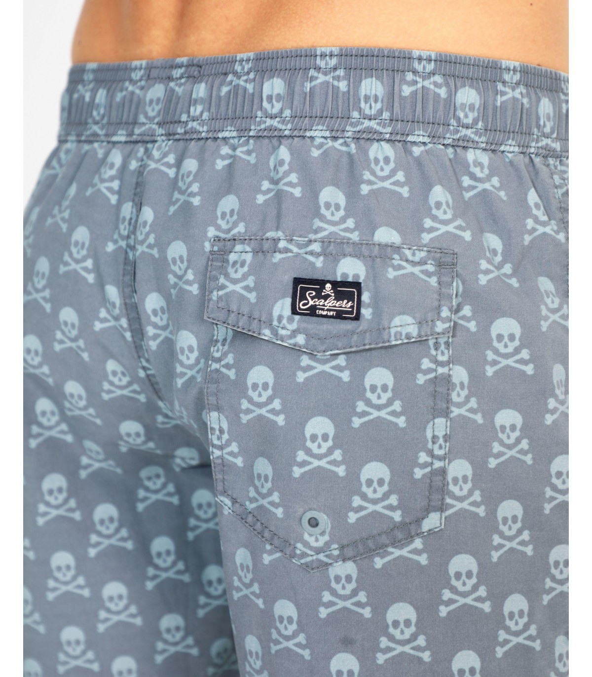 Bañador estampado confeccionado en tejido técnico. Corte Regular Fit, cierre con lazada y cinturilla elástica y bolsillos laterales. Detalle de calavera en el bajo.