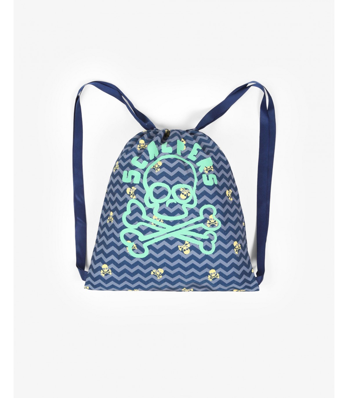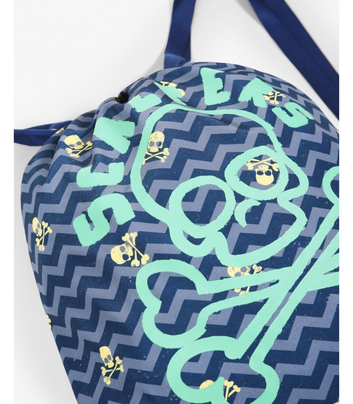 - Bolsa ligera estampada con doble funcionalidad de bolso. Asas de tela largas y cortas y cierre tipo saco. Detalle de print de calavera.