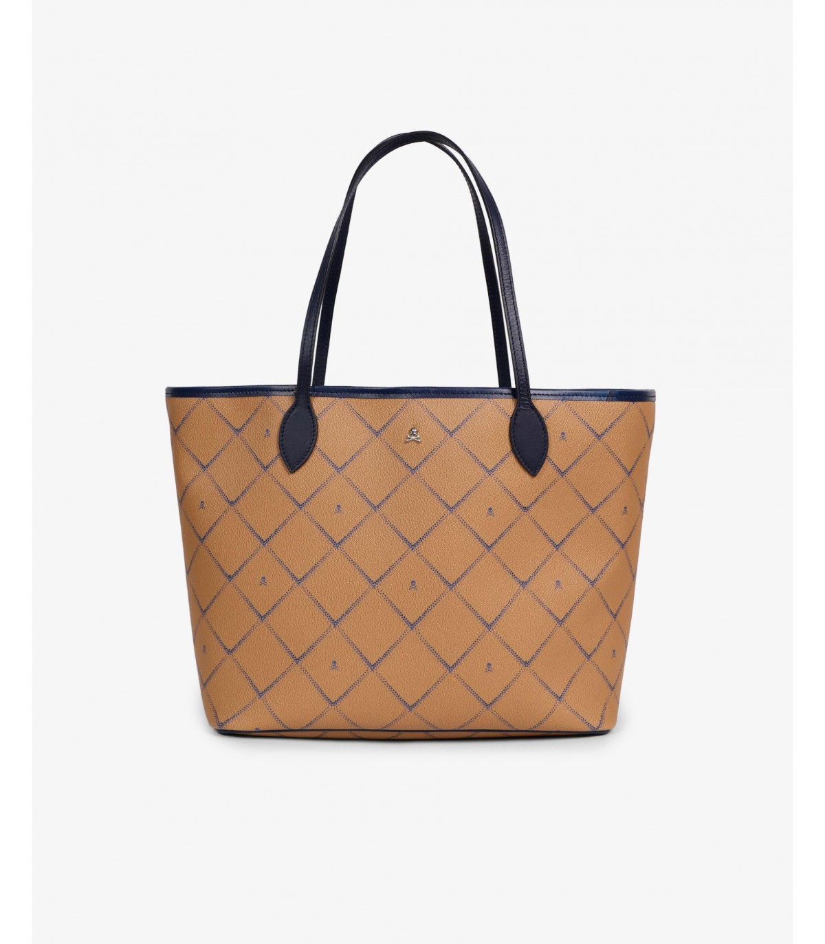- Bolso shopper con estampado de rombo. Asas cortas y bolsillo interior con cremallera. Detalle de tachuela de calavera.