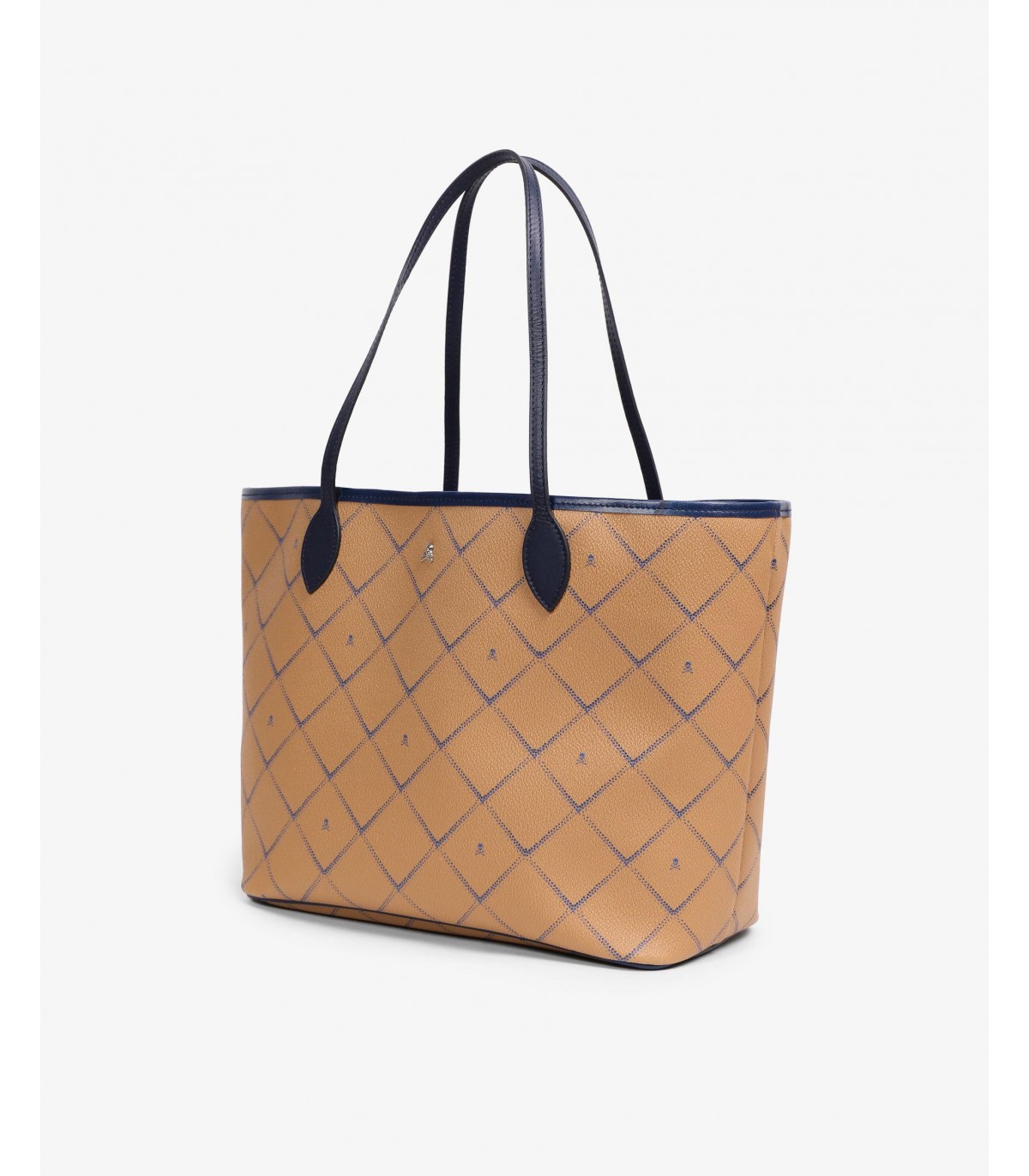 Bolso shopper con estampado de rombo. Asas cortas y bolsillo interior con cremallera. Detalle de tachuela de calavera.