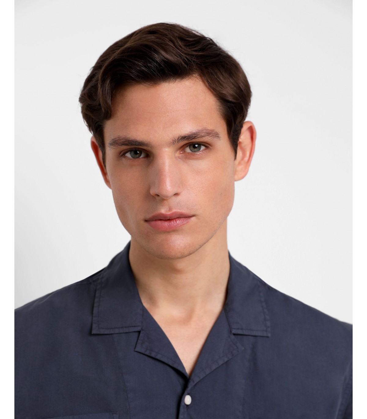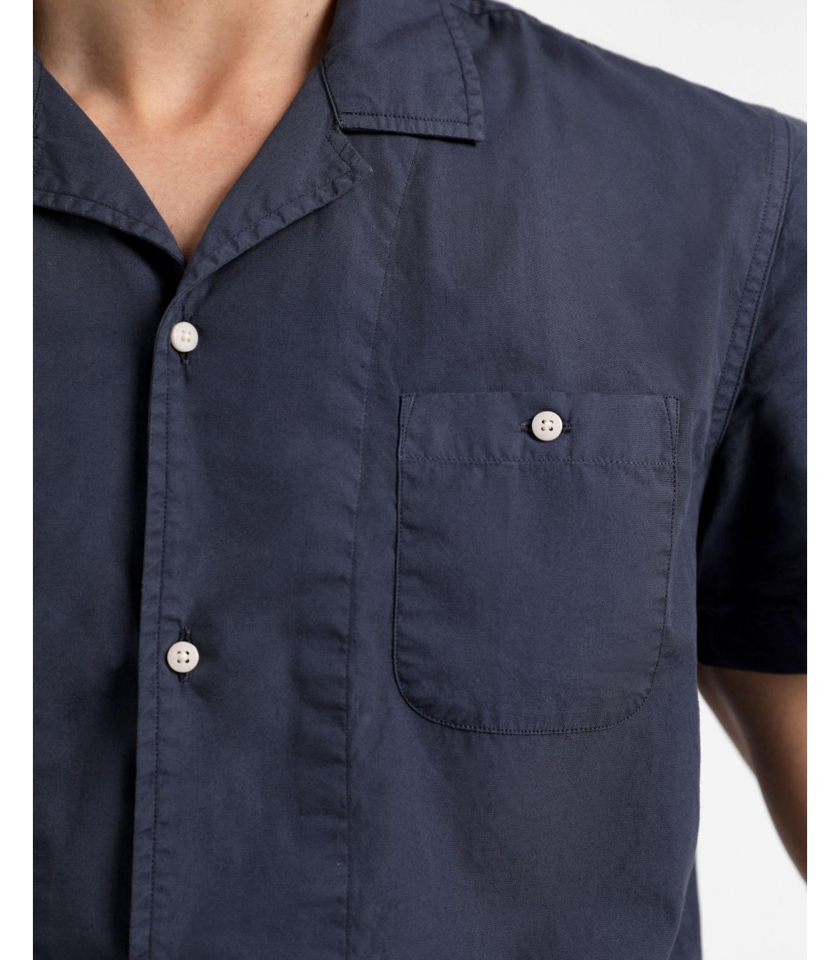 - Camisa confeccionada en tejido 100% algodón lavado. Corte Regular Fit, cuello pijamero y cierre con botones. Manga corta y detalle de bolsillos en pecho.