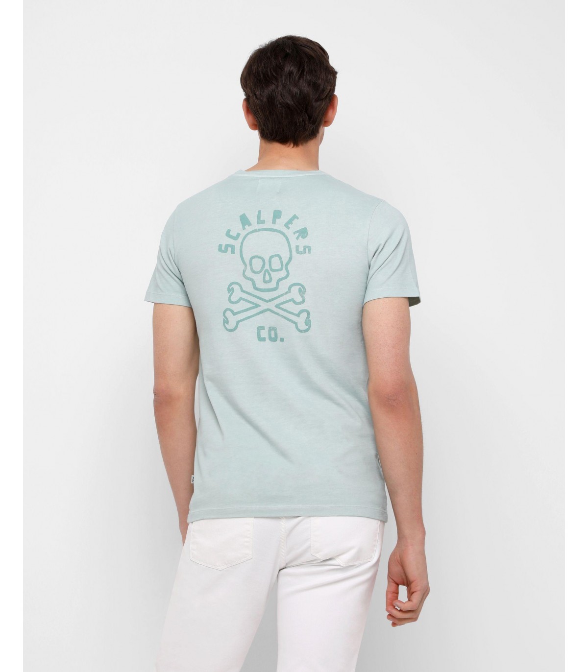 - Camiseta confeccionada en tejido 100% algodón orgánico. Corte Regular Fit, cuello redondo y manga corta. Detalle de print frontal y calavera trasera.