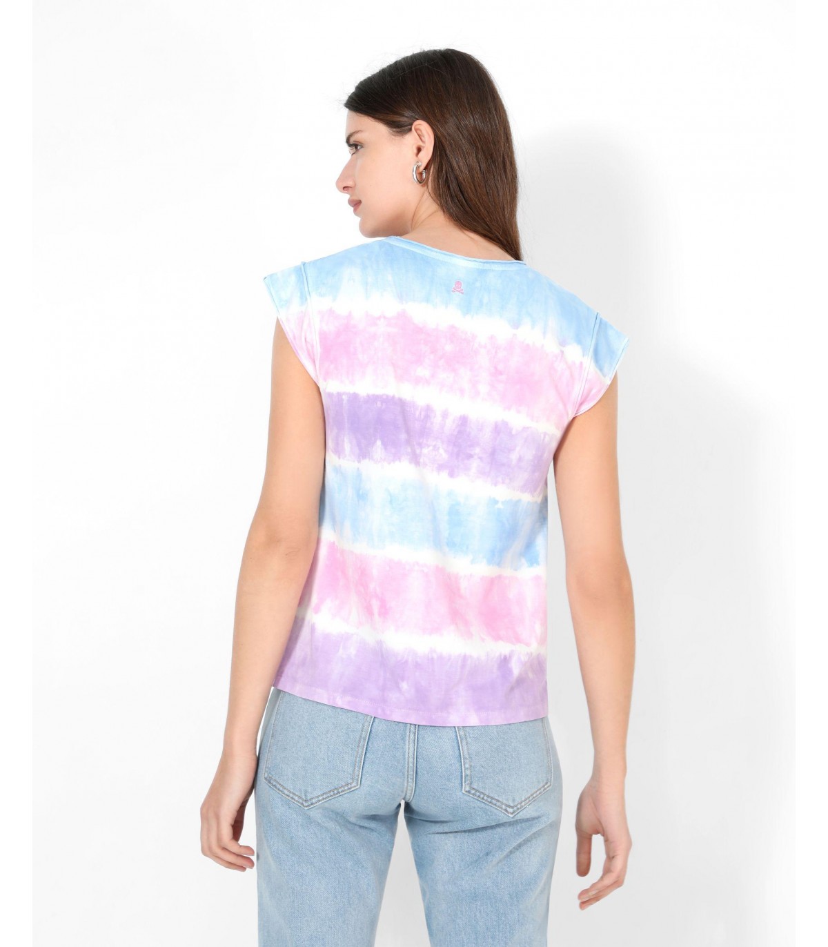 - Camiseta con estampado tie dye confeccionada en tejido 100% algodón. Corte Regular Fit, cuello redondo y manga en sisa.