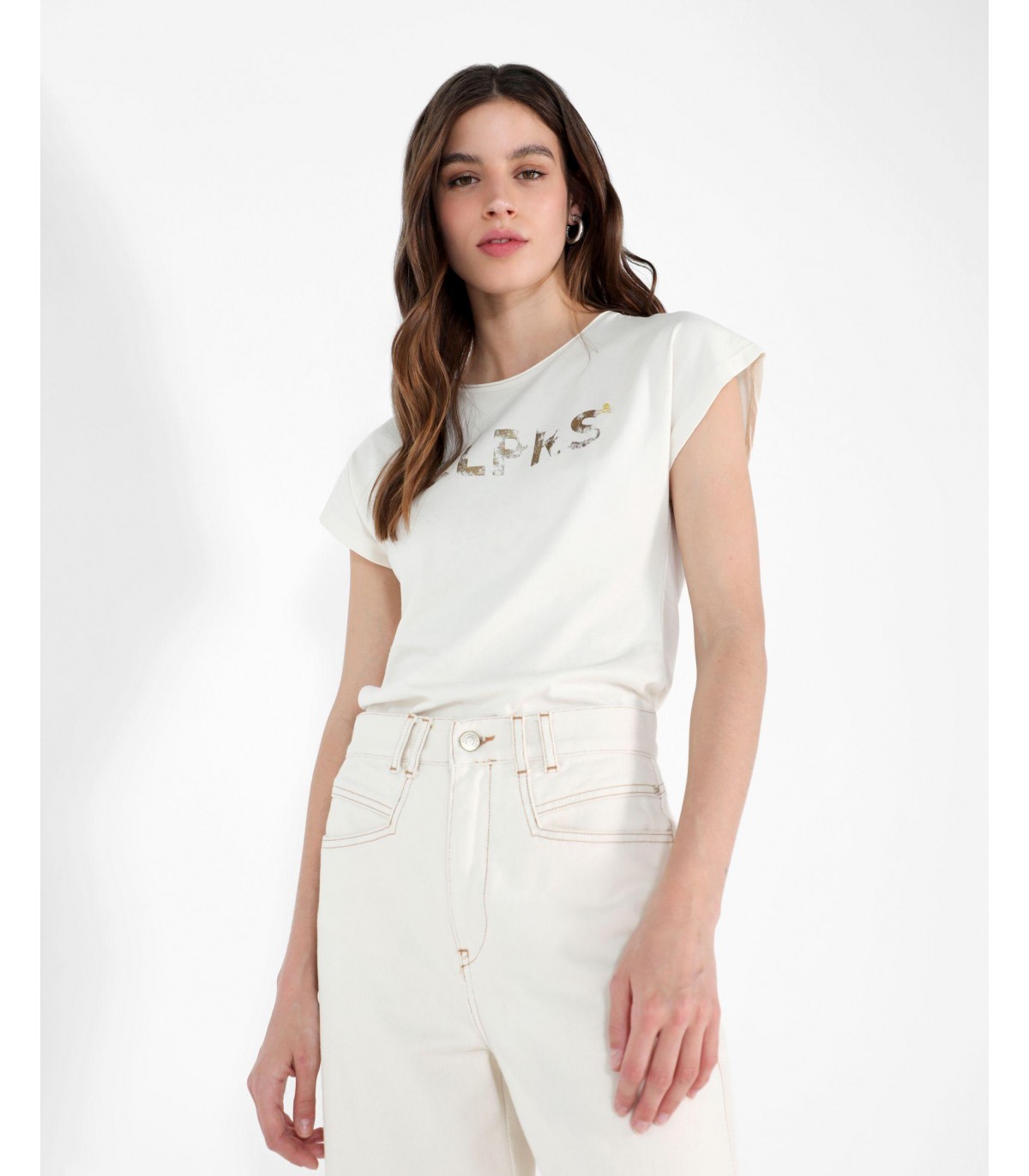 - Camiseta confeccionada en tejido 100% algodón orgánico. Corte Regular Fit, cuello redondo y manga corta subida. Detalle de print de Scalpers frontal desgastado.