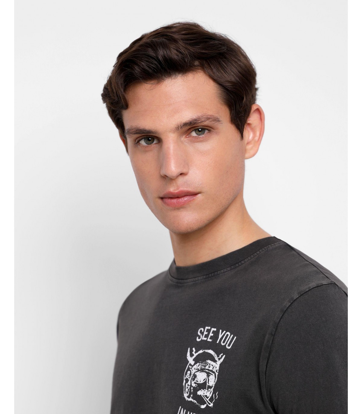 - Camiseta confeccionada en tejido 100% algodón orgánico. Corte Regular Fit, cuello redondo y manga corta. Detalle de print en pecho.