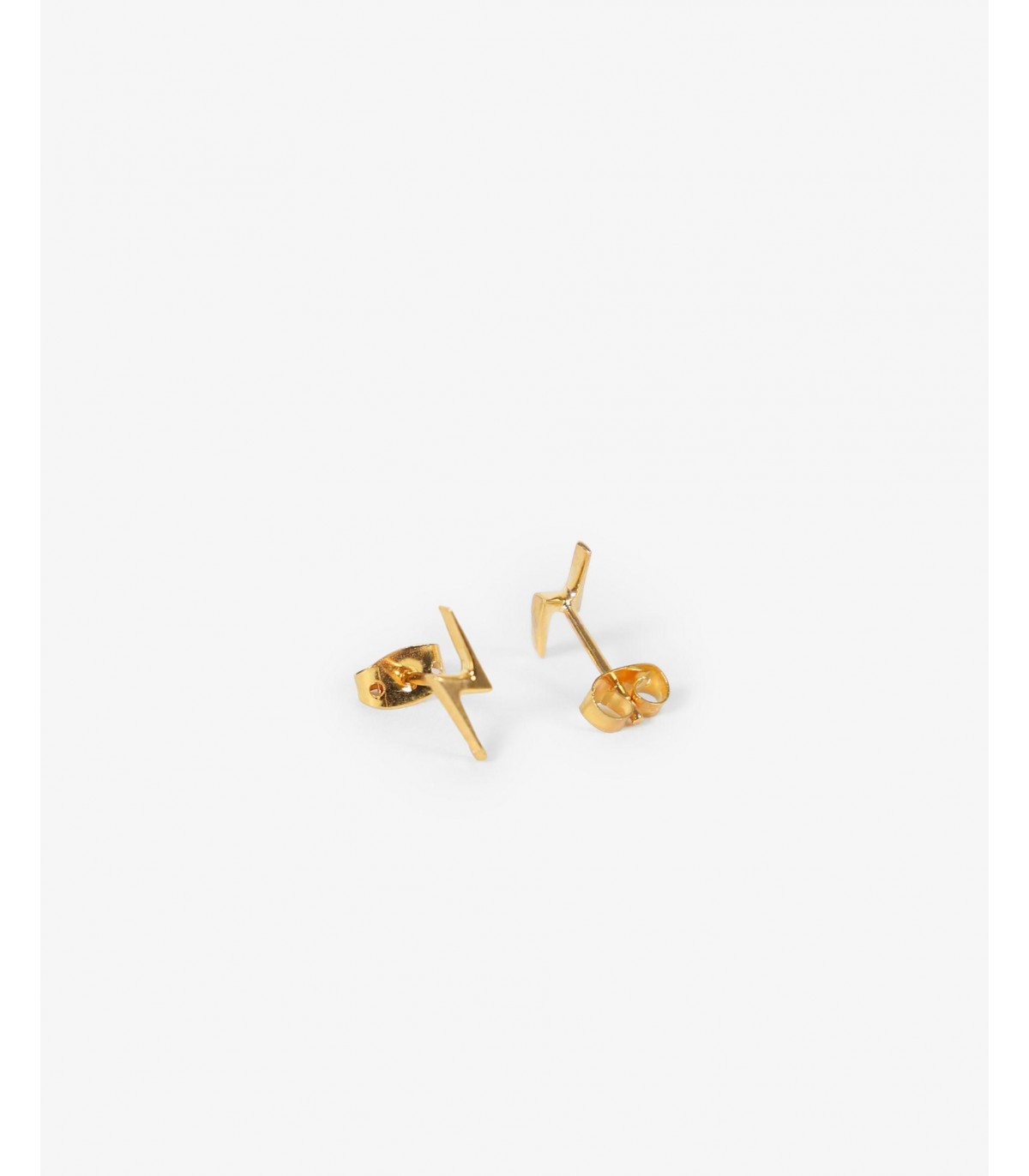 - Pendientes mini con forma de rayo de bronce bañado en oro de 18k. Cierre de tuerca.