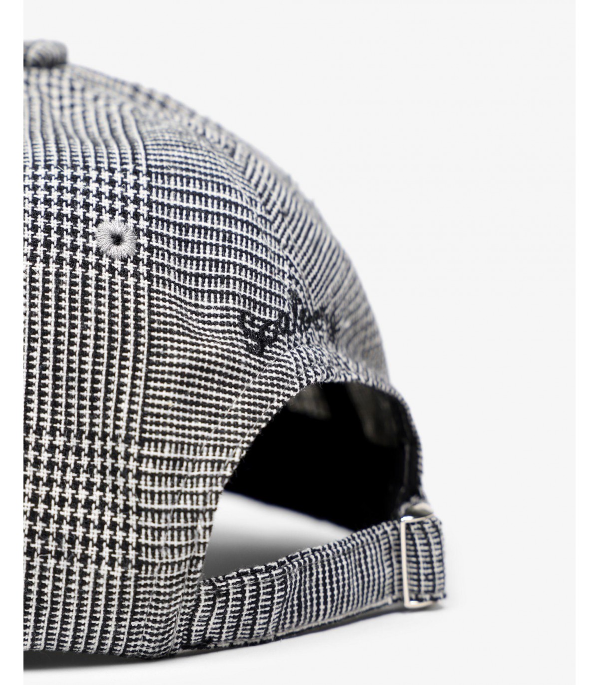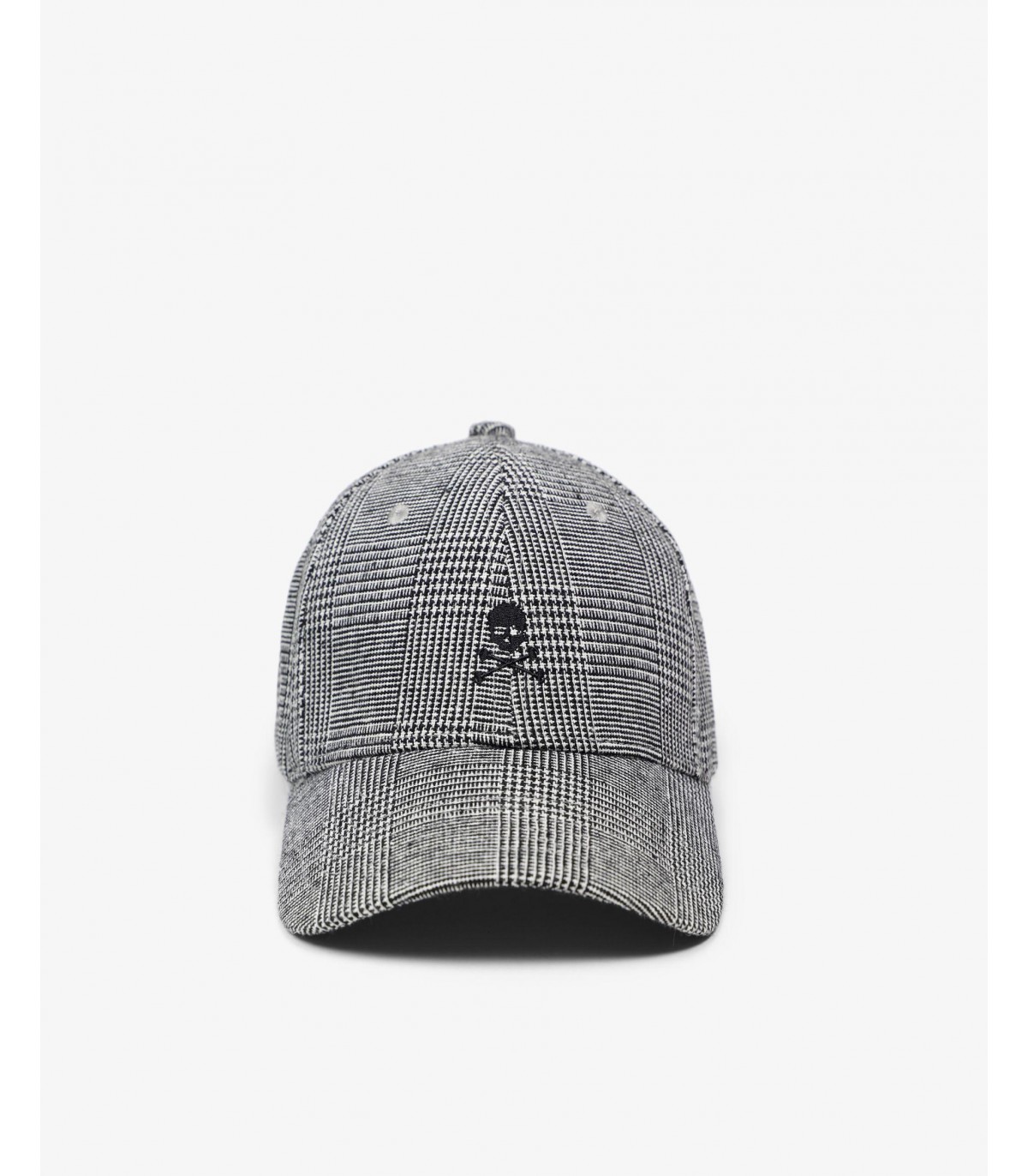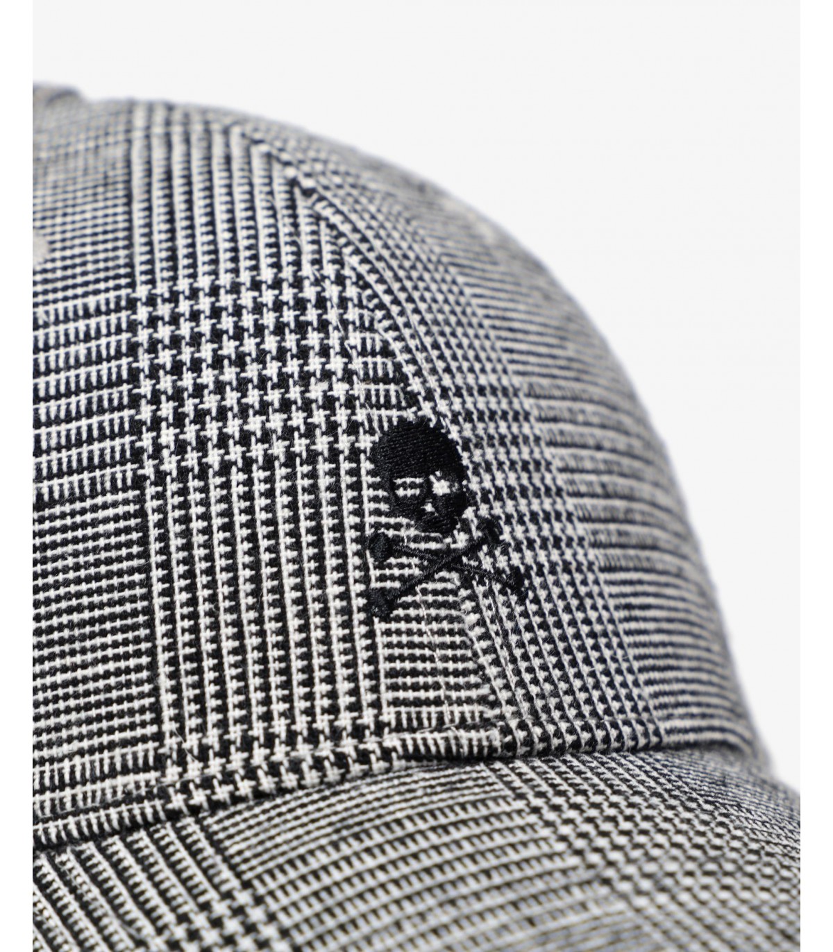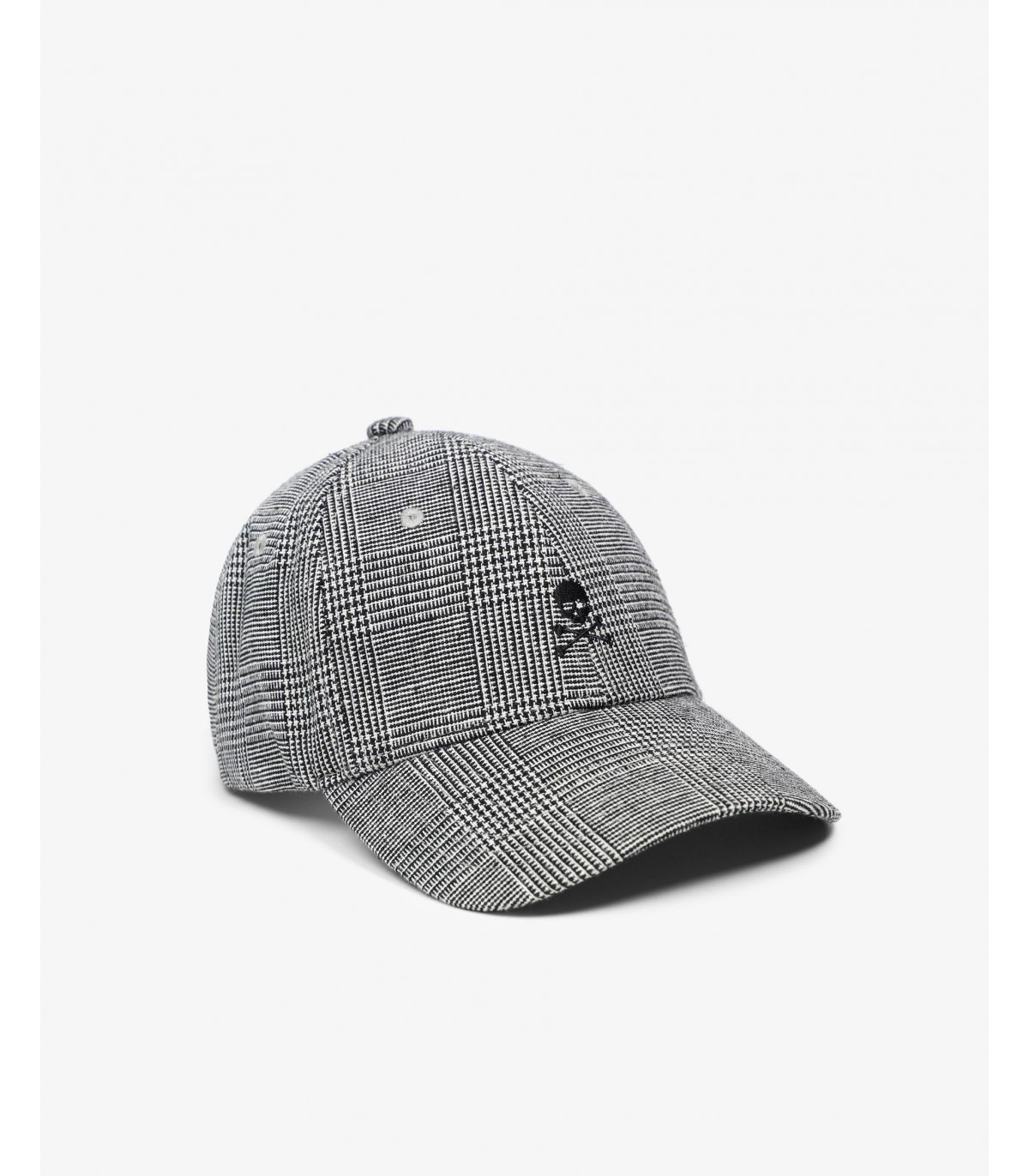 Gorra con estampado de príncipe de gales. Cierre ajustable trasero y detalle de calavera y logo bordado.