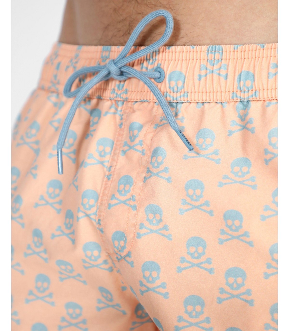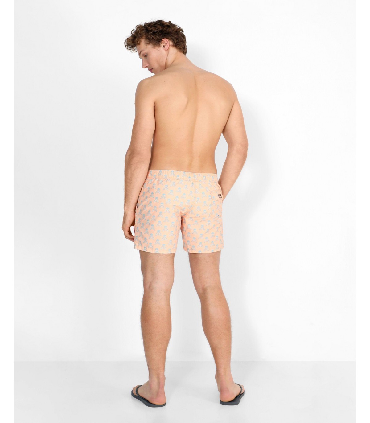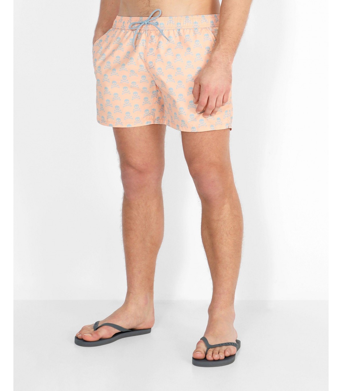 Bañador estampado confeccionado en tejido técnico. Corte Regular Fit, cierre con lazada y cinturilla elástica y bolsillos laterales. Detalle de calavera en el bajo.