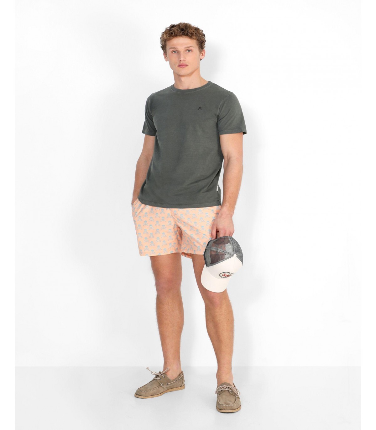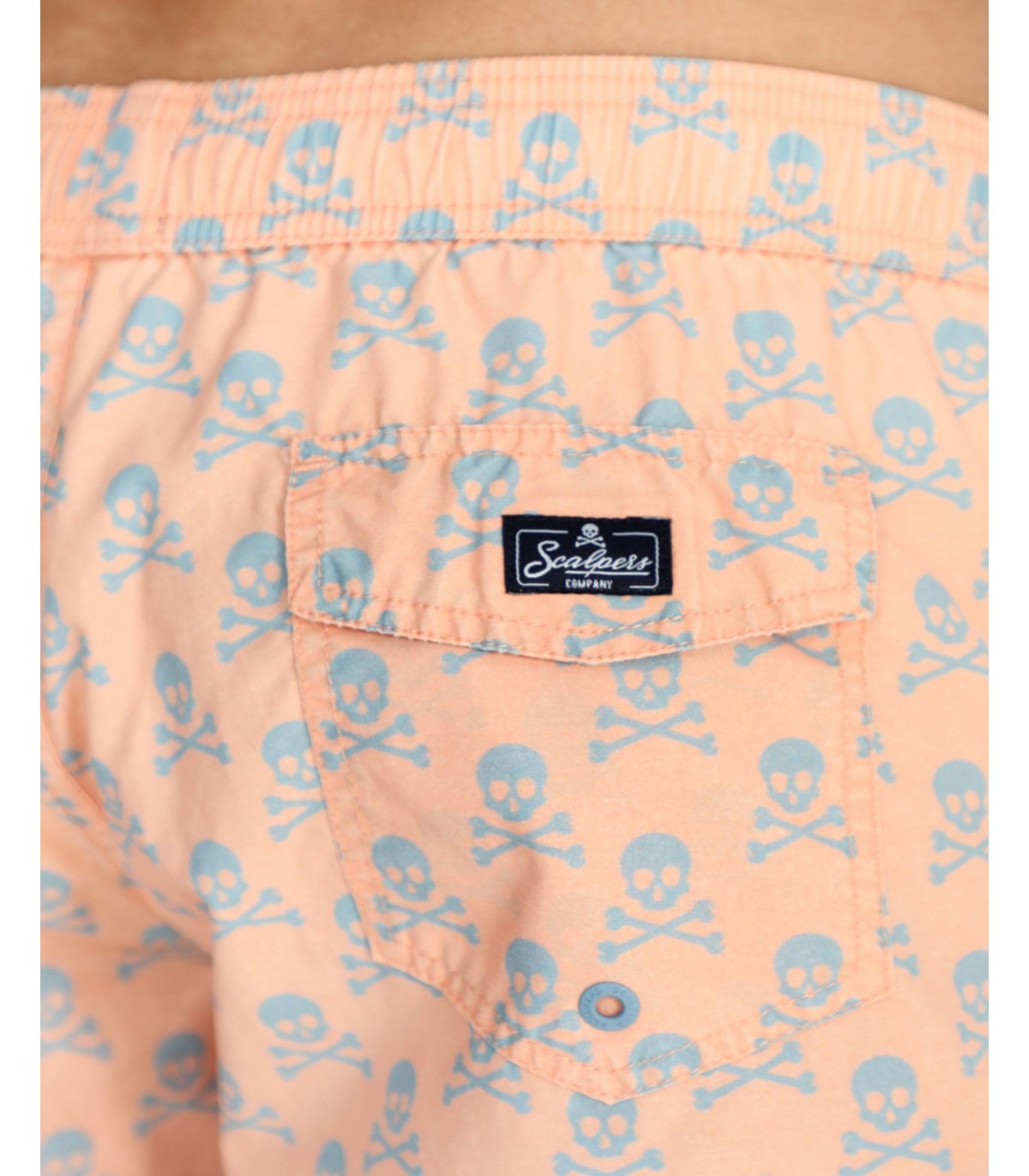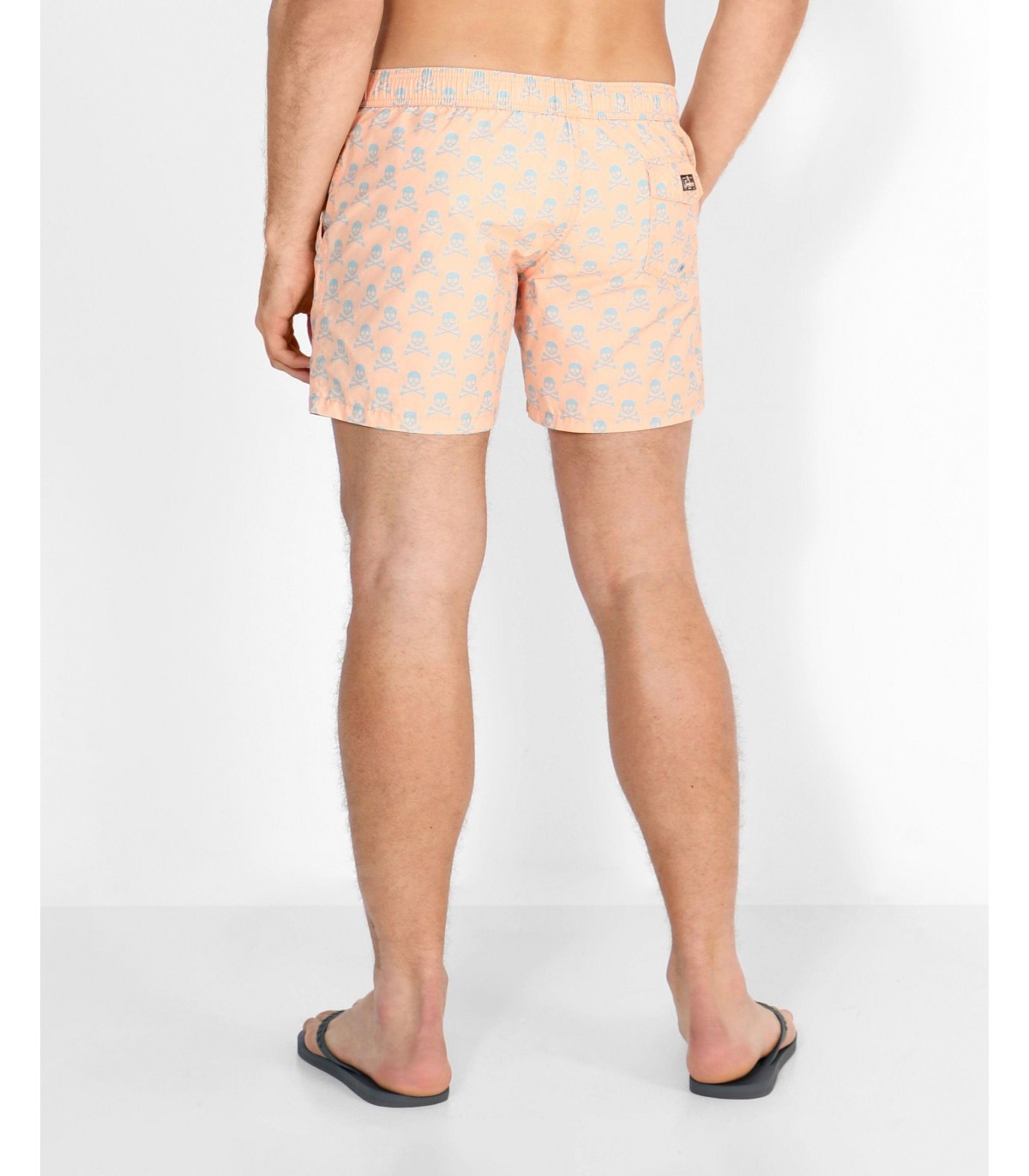 Bañador estampado confeccionado en tejido técnico. Corte Regular Fit, cierre con lazada y cinturilla elástica y bolsillos laterales. Detalle de calavera en el bajo.