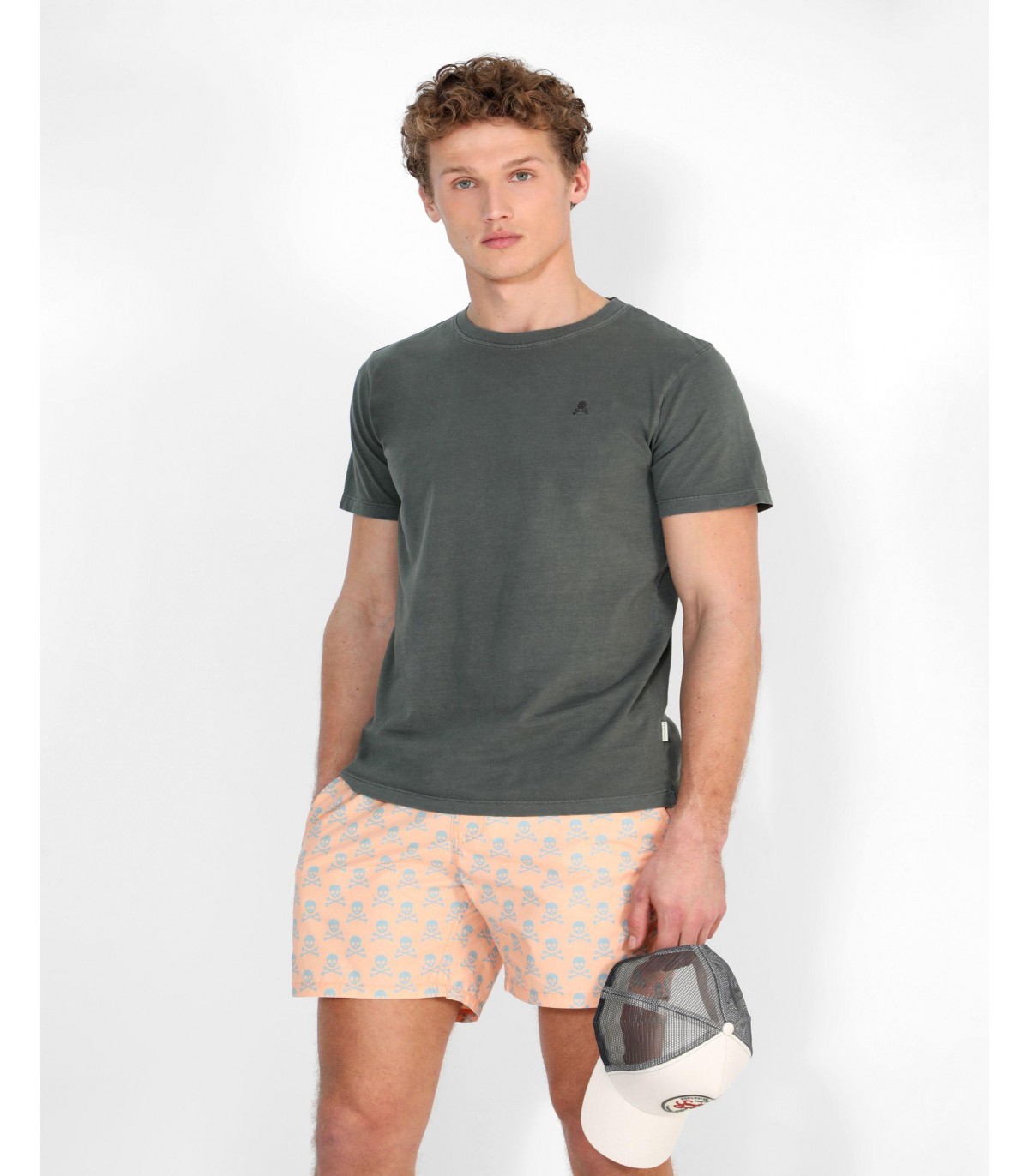Camiseta confeccionada en tejido 100% algodón orgánico. Corte Regular Fit, cuello redondo y manga corta. Detalle de print frontal y calavera trasera.