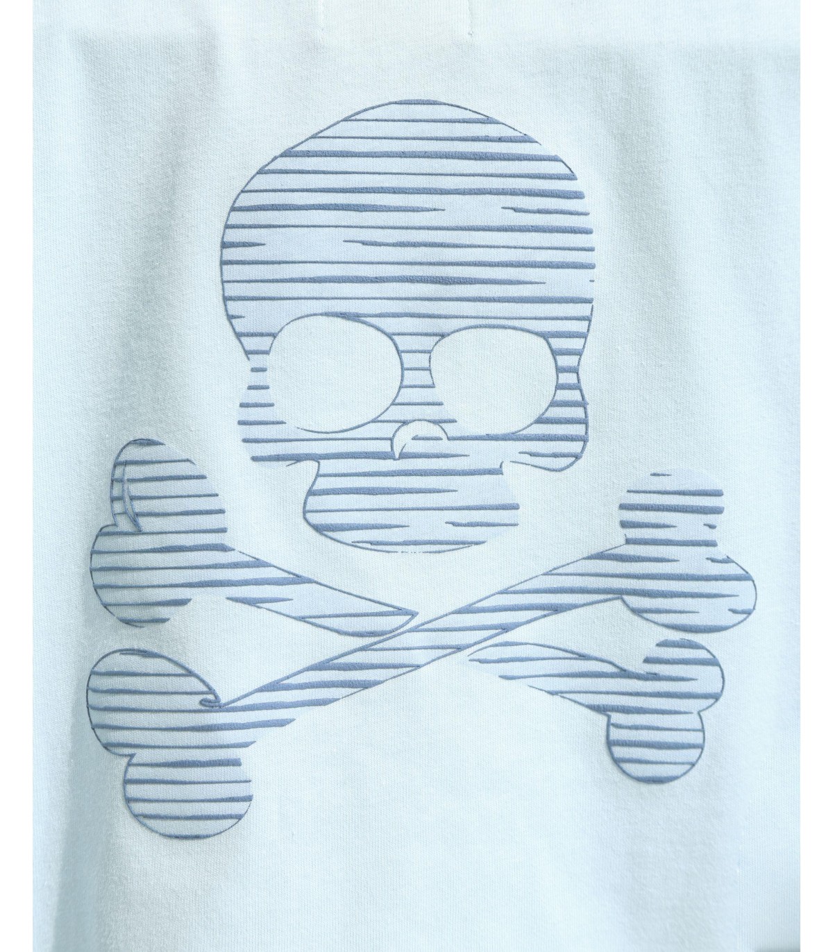 Camiseta con print de la calavera delantero, confeccionada en tejido 100% algodón. Corte recto, cuello redondo y manga corta. Detalle de etiqueta en el bajo y print de calavera "mágico": el color solo se aprecia cuando le da la luz del sol.