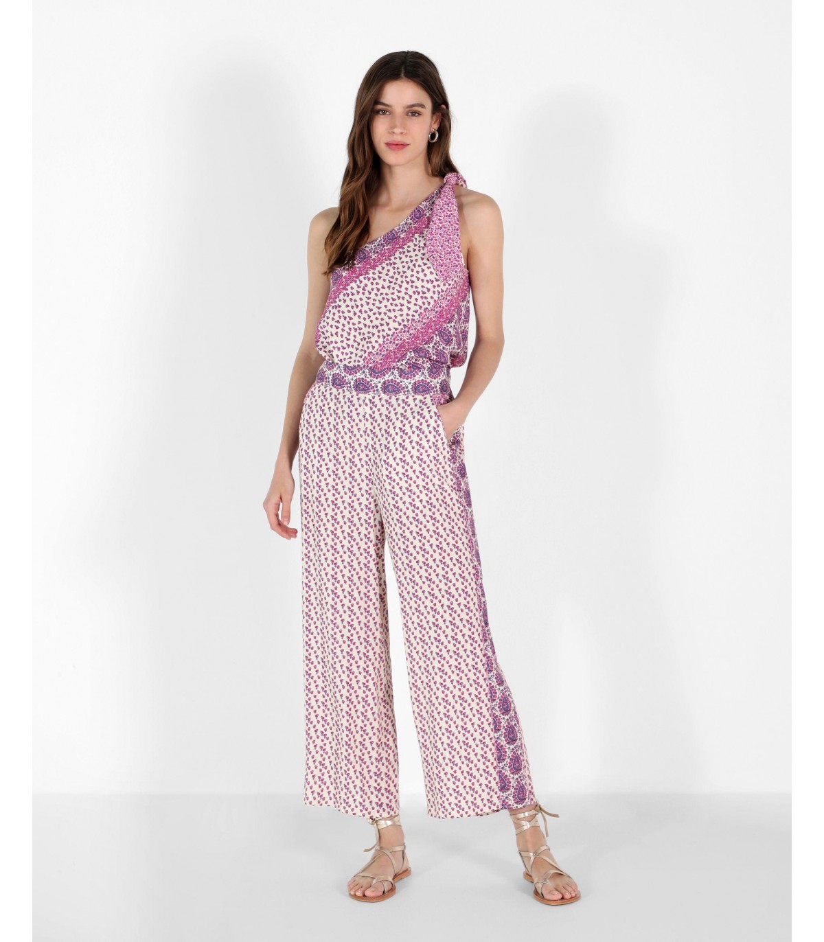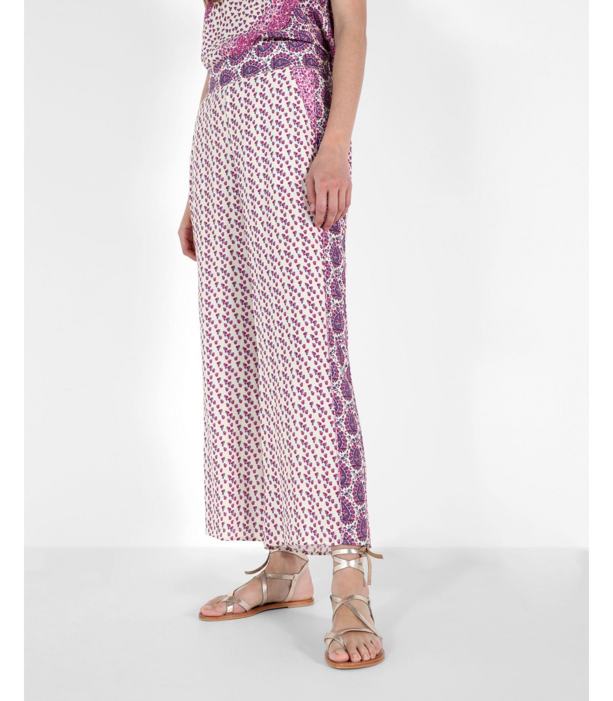 Pantalón con estampado. Corte culotte fluído, cierre con cremallera y bolsillos laterales.