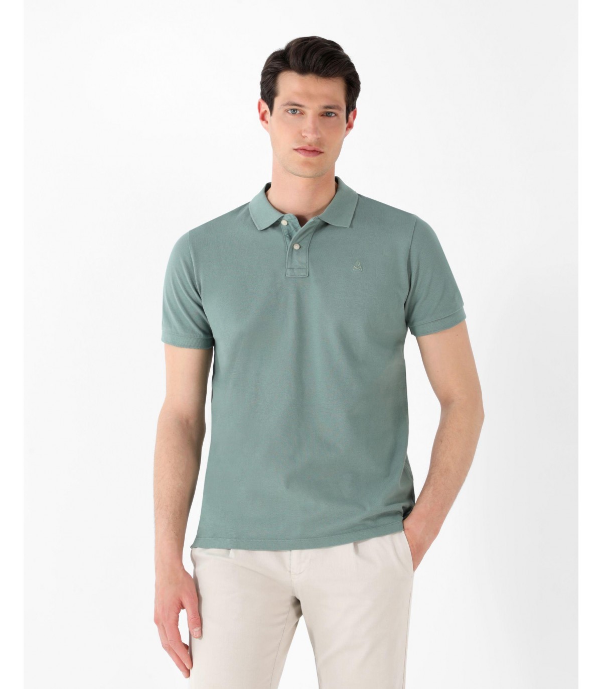 Polo confeccionado en tejido 100% algodón. Corte Regular Fit, cuello clásico y cierre con botones. Manga corta y detalle de calavera a tono.