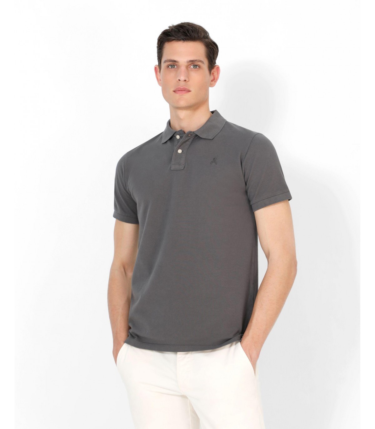 - Polo confeccionado en tejido 100% algodón. Corte Regular Fit, cuello clásico y cierre con botones. Manga corta y detalle de calavera a tono.