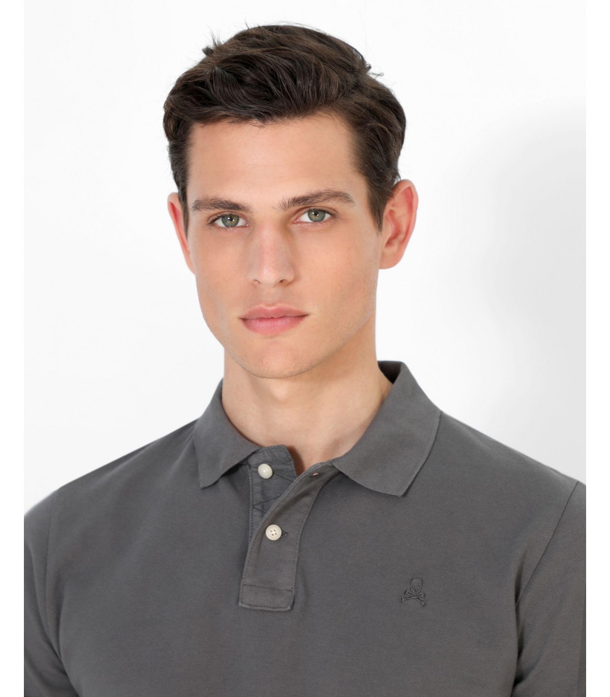 Polo confeccionado en tejido 100% algodón. Corte Regular Fit, cuello clásico y cierre con botones. Manga corta y detalle de calavera a tono.