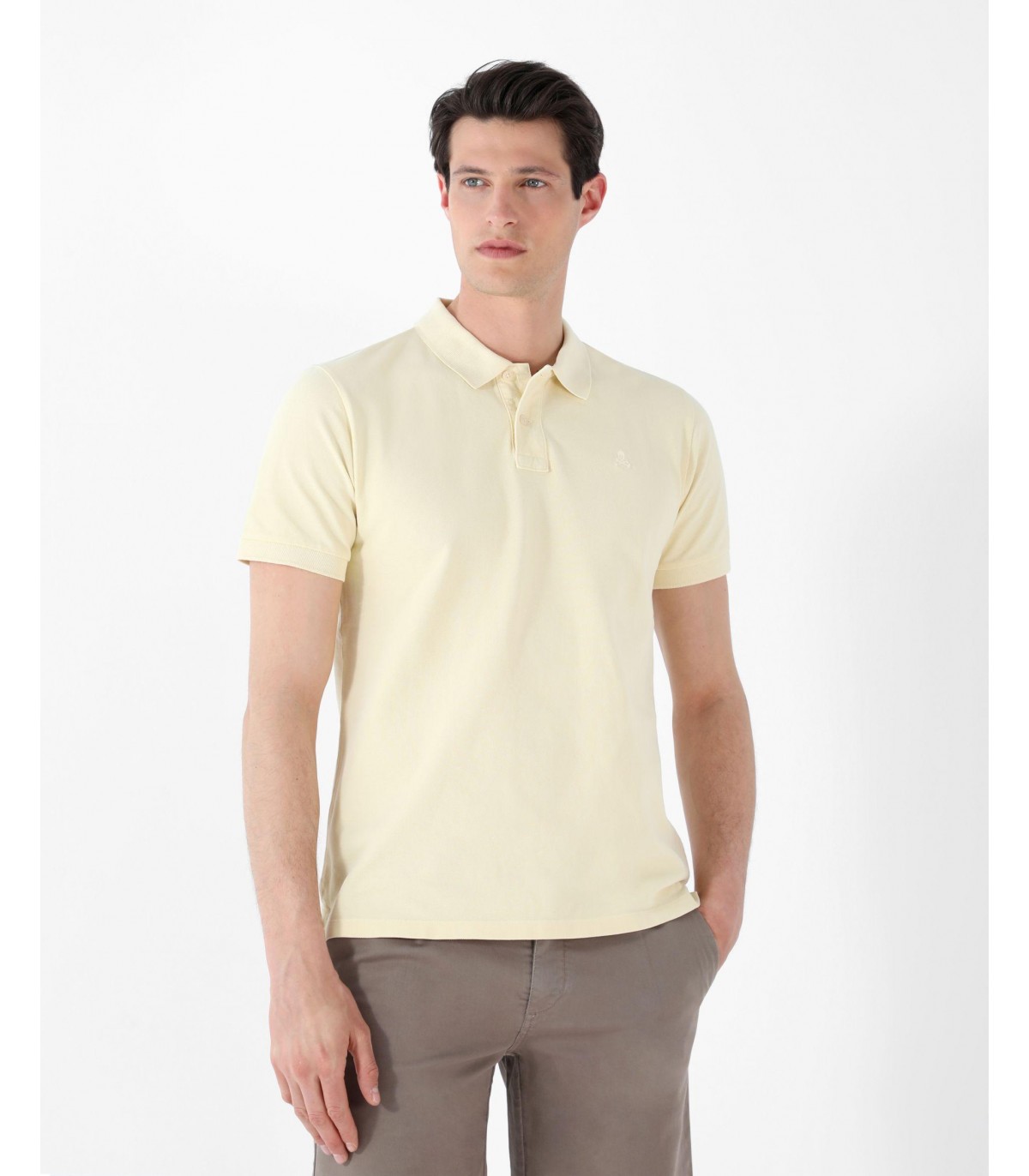 Polo confeccionado en tejido 100% algodón. Corte Regular Fit, cuello clásico y cierre con botones. Manga corta y detalle de calavera a tono.