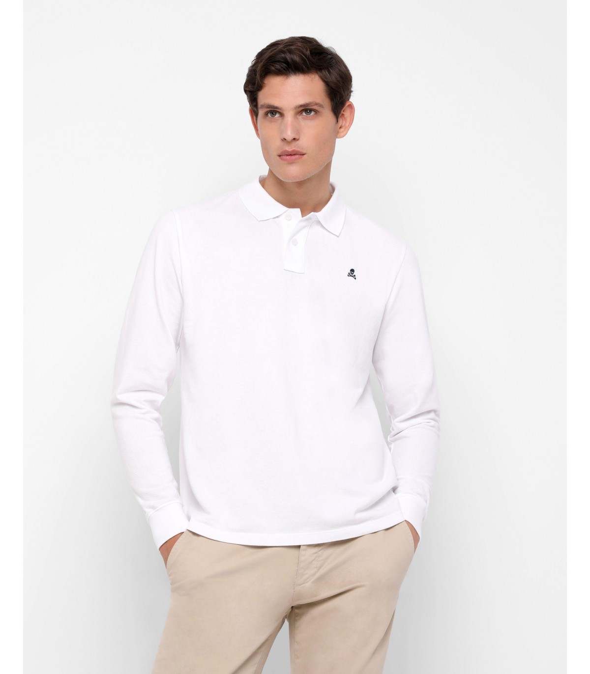 Polo confeccionado en tejido 100% algodón orgánico. Corte Regular Fit, cuello clásico y cierre con botones. Manga larga terminada en puño con botones y detalle de calavera bordada a contraste.