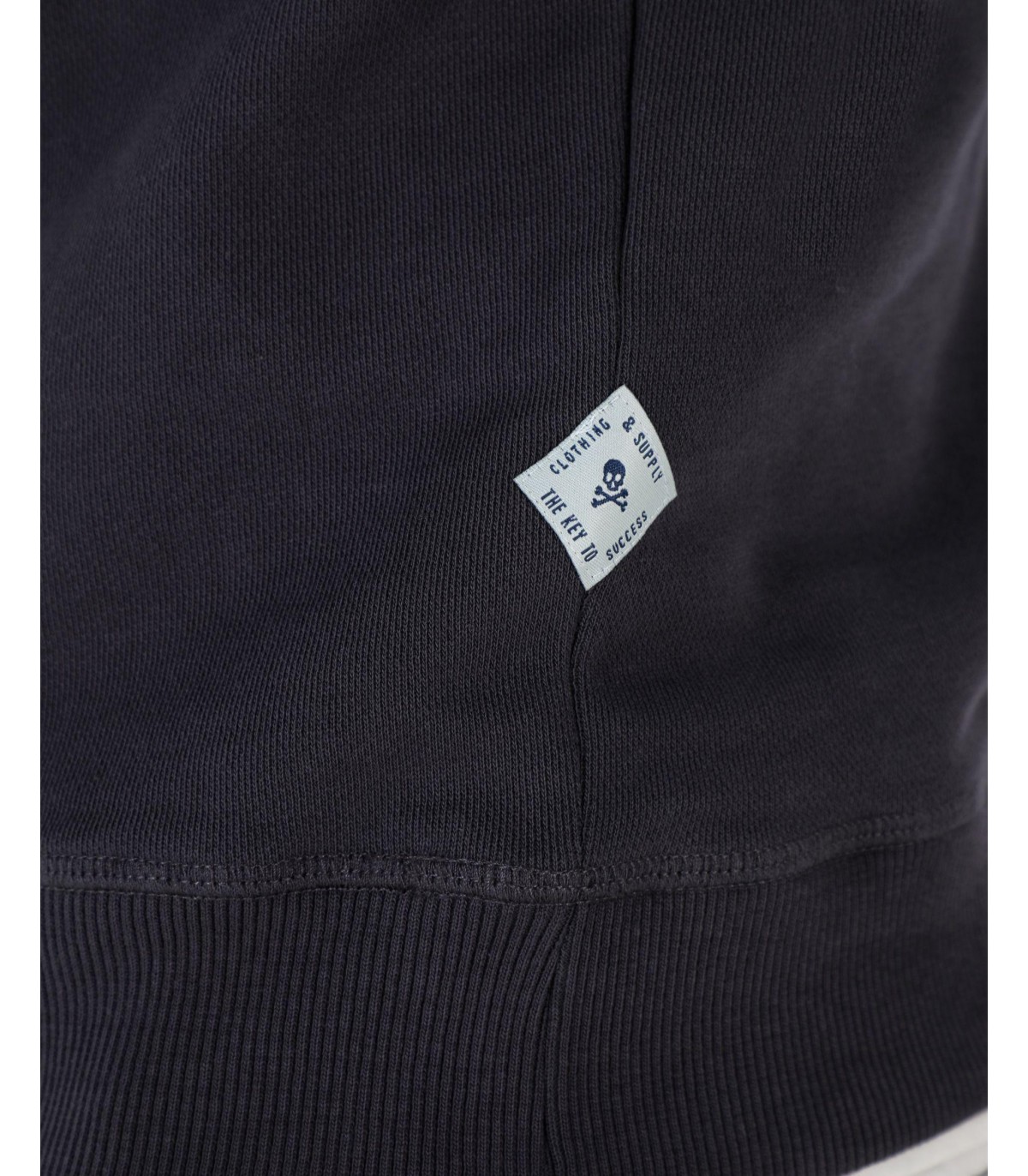 - Sudadera confeccionada en tejido 100% algodón orgánico con lavado stone wash. Corte Regular Fit, cuello redondo y manga larga terminada en rib. Detalle de cosido en cruz en el cuello, etiqueta decorativa en puño y calavera bordada a tono en el pecho.