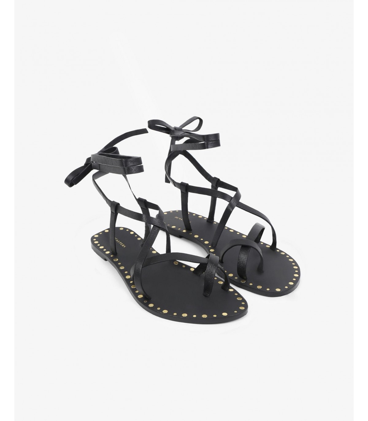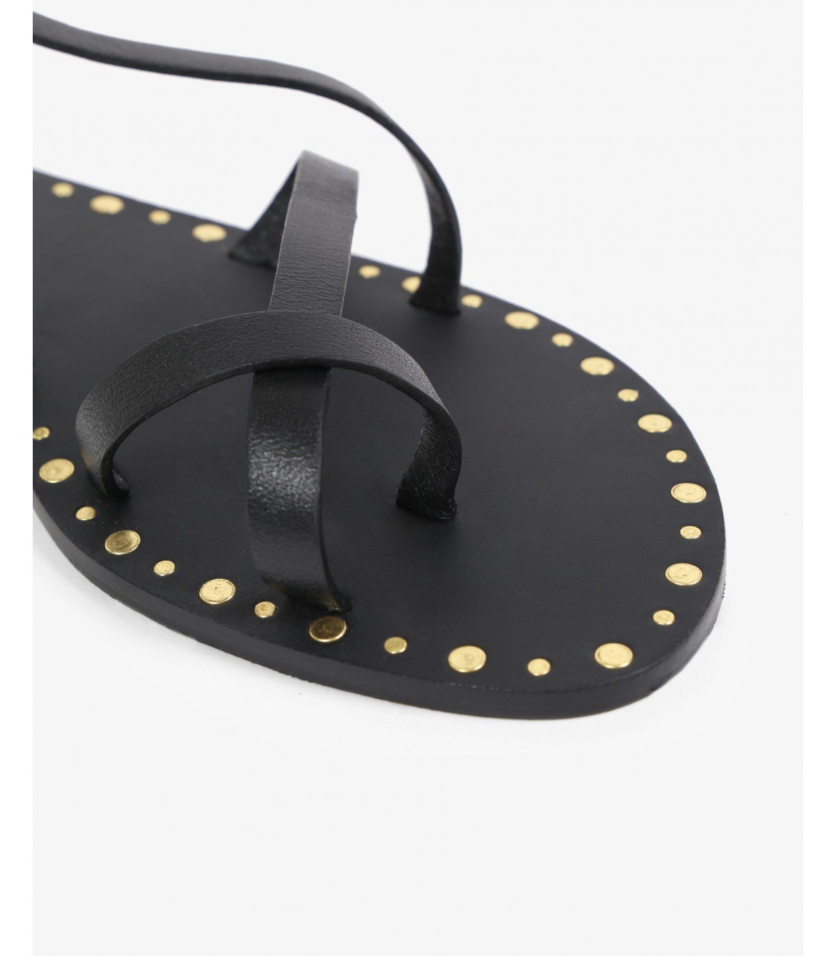 Sandalias confeccionadas en piel. Cierre con tiras y suela de goma. Detalle de tachas.