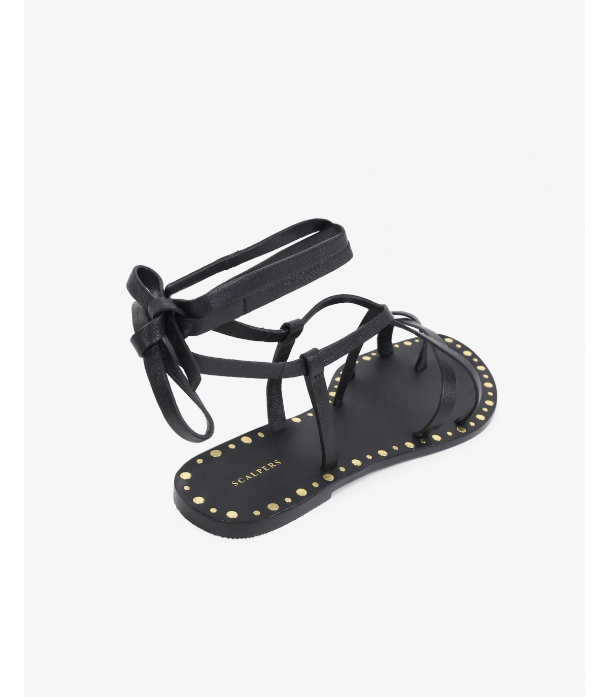 - Sandalias confeccionadas en piel. Cierre con tiras y suela de goma. Detalle de tachas.