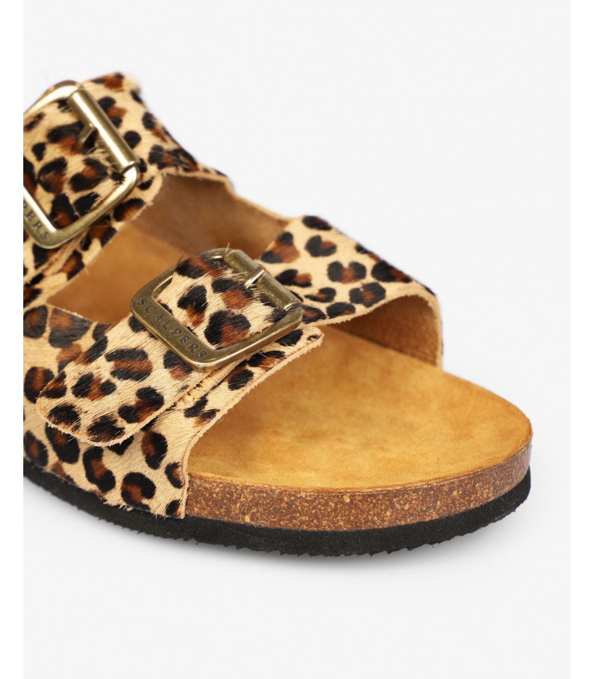 Sandalias con estampado de animal print con doble hebilla delantera.