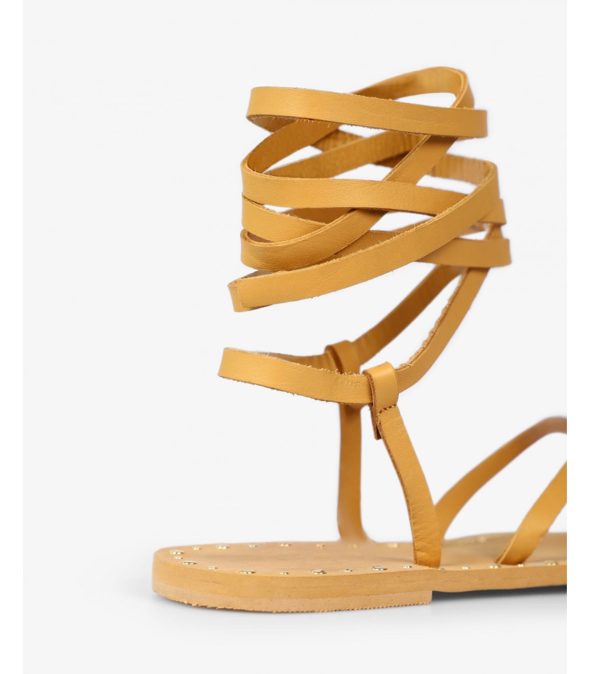 Sandalias confeccionadas en piel. Cierre con tiras y suela de goma. Detalle de tachas.